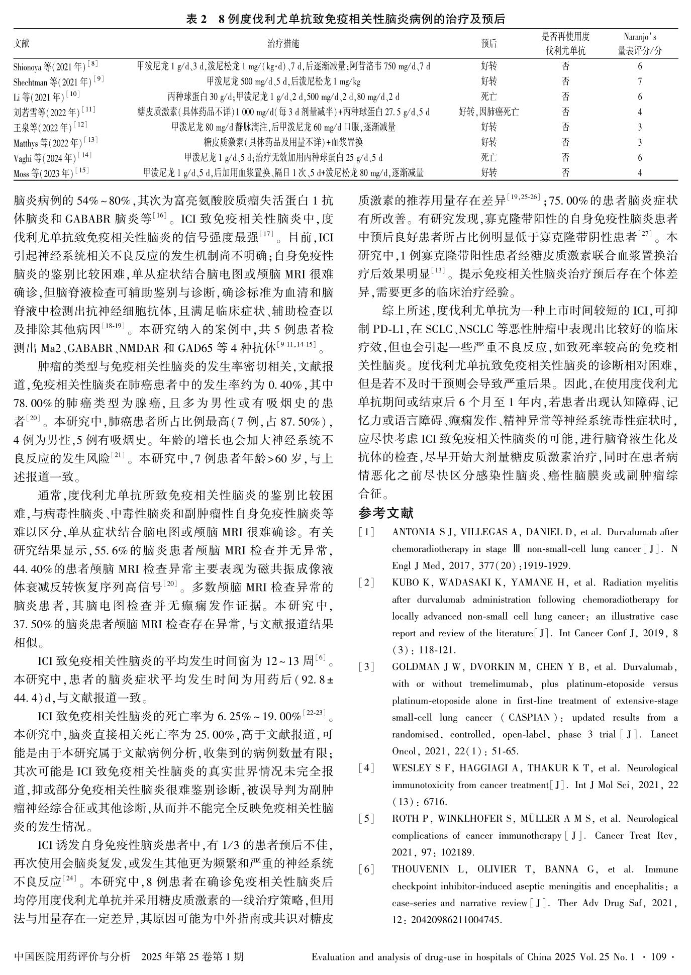 度伐利尤單抗引起免疫相關(guān)性腦炎的文獻(xiàn)病例分析