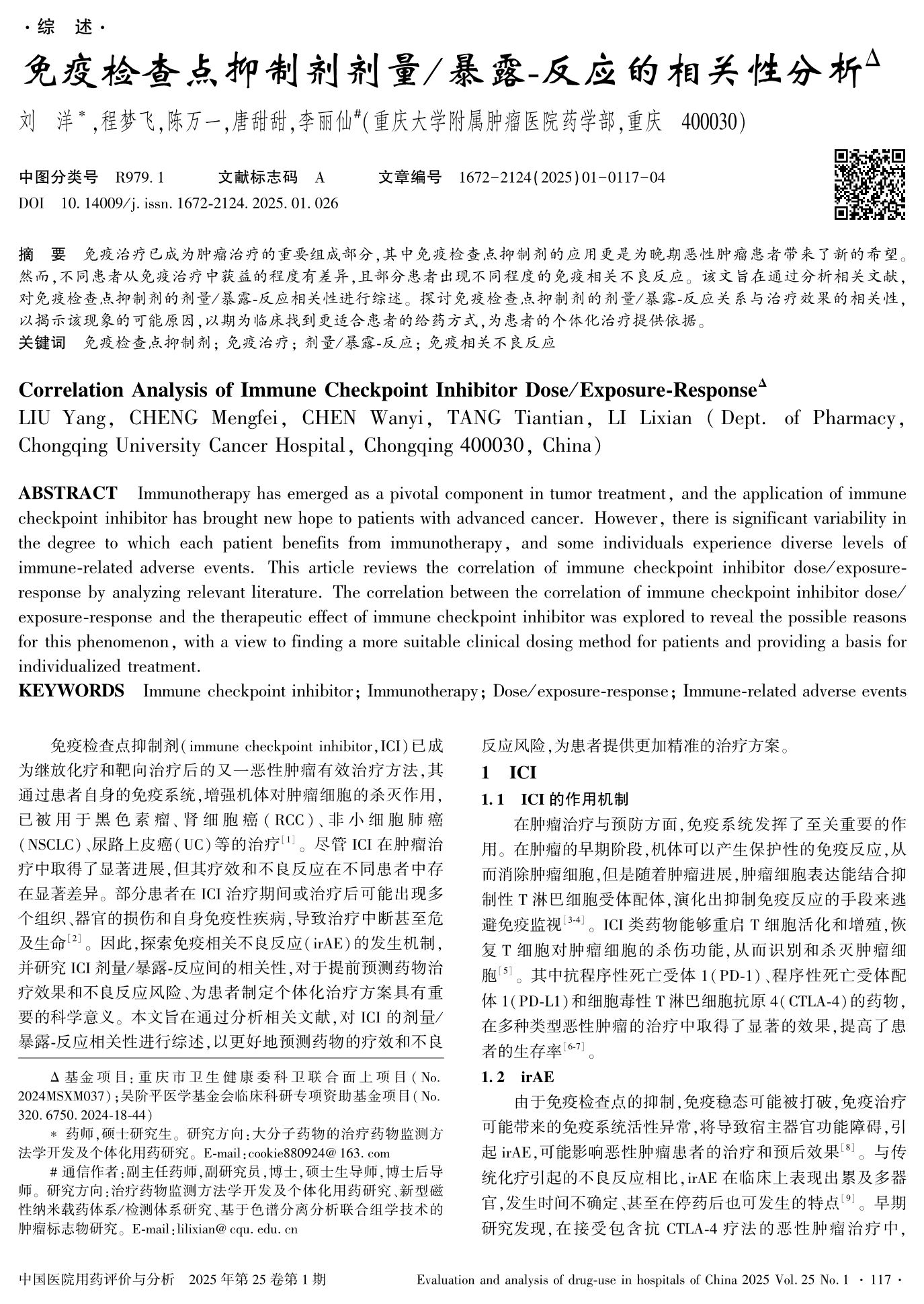 免疫檢查點抑制劑劑量/暴露-反應(yīng)的相關(guān)性分析