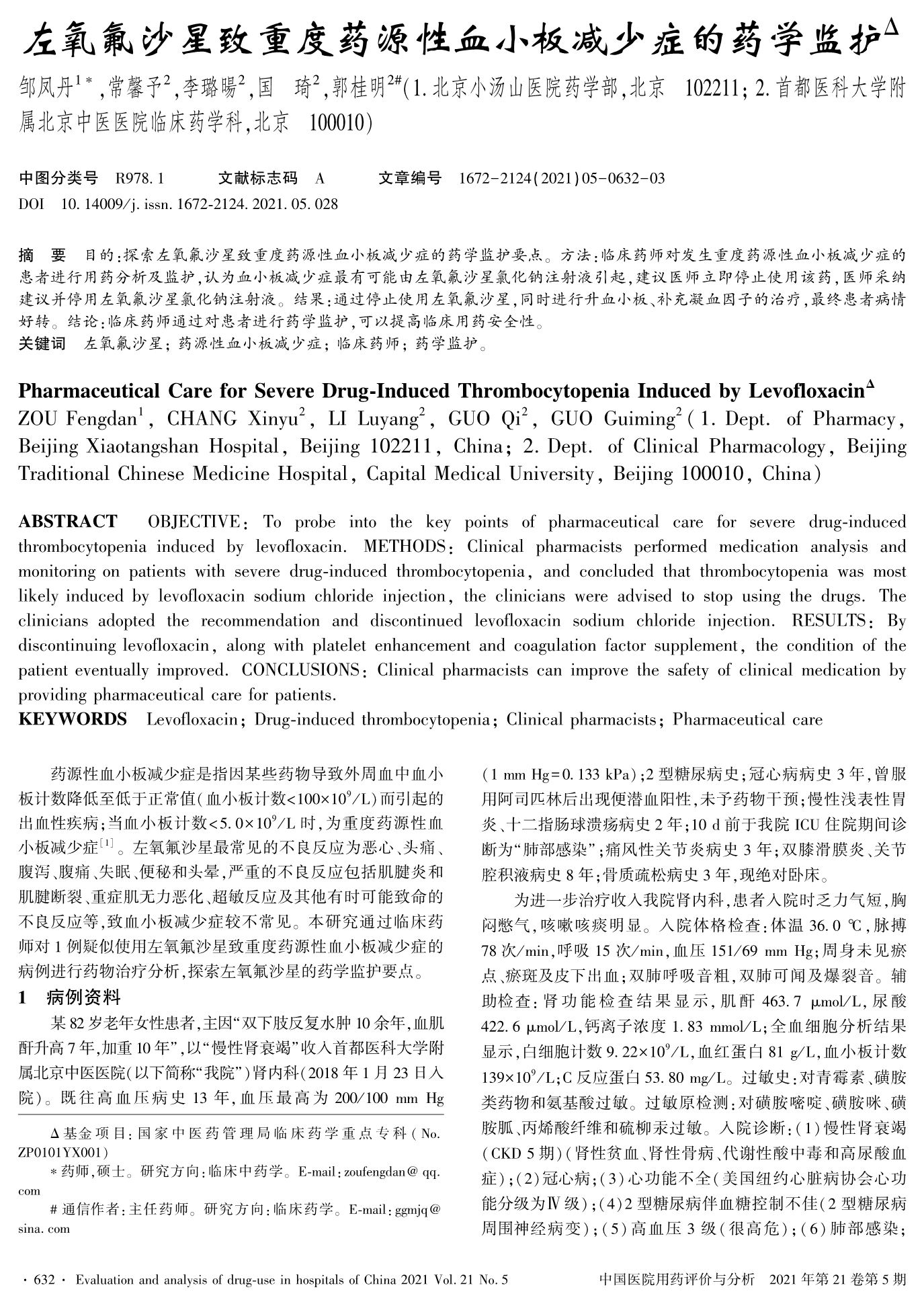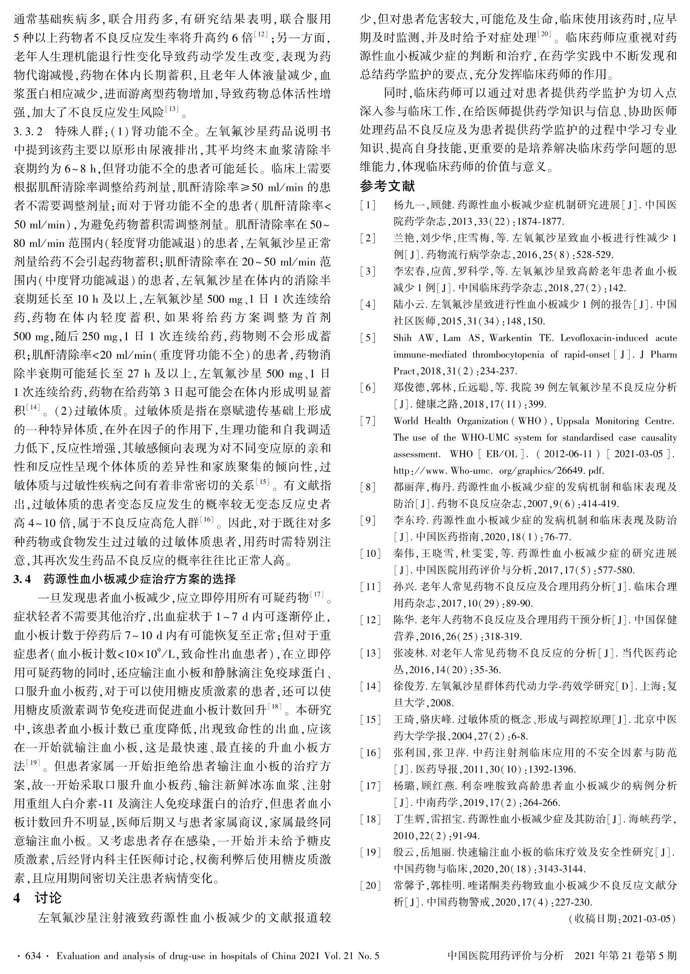 左氧氟沙星致重度藥源性血小板減少癥的藥學監(jiān)護