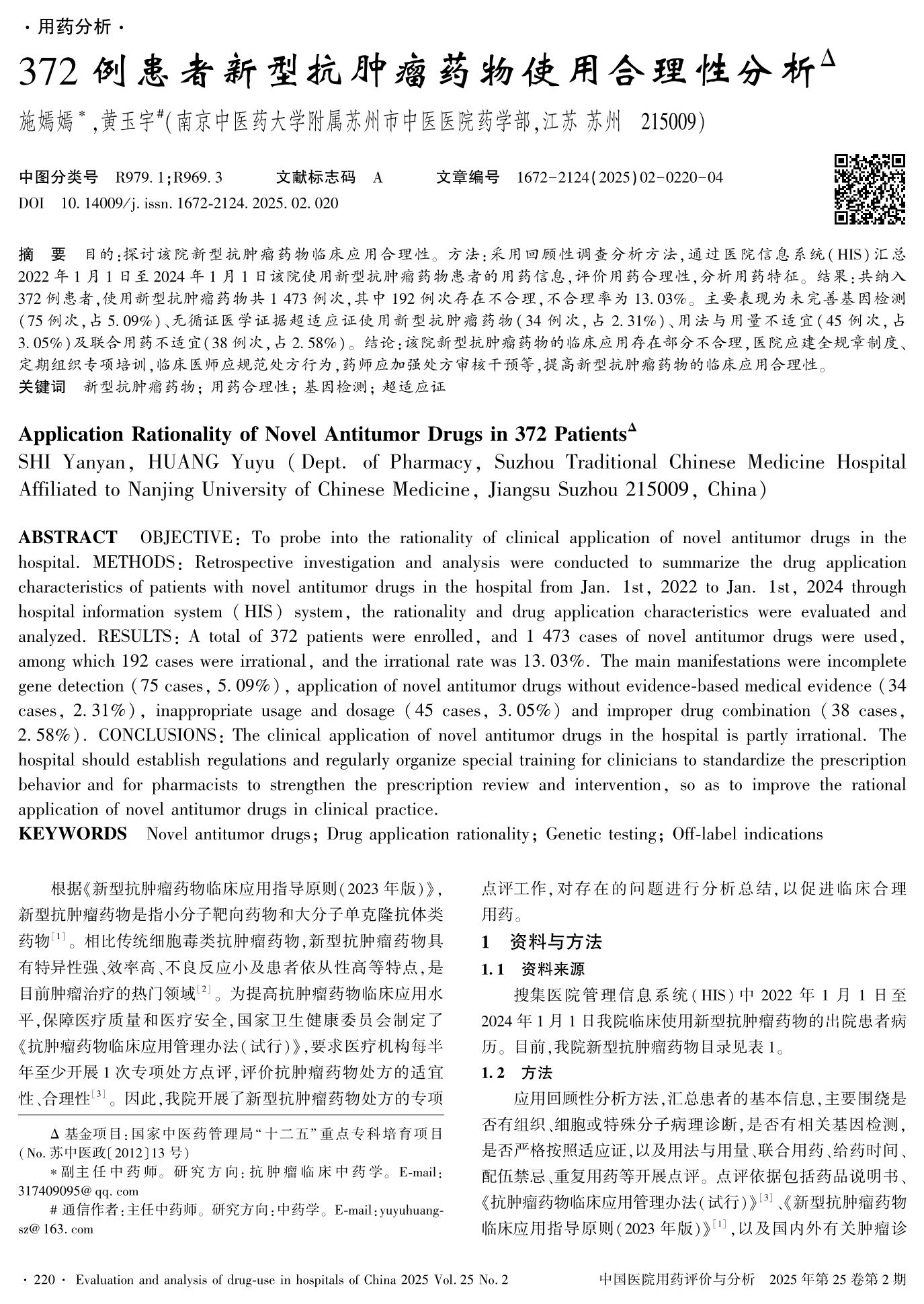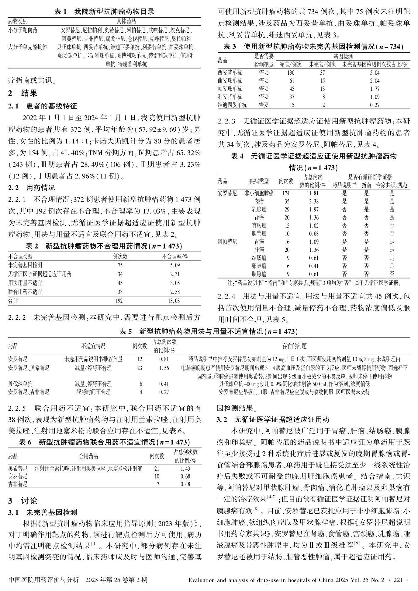 372例患者新型抗腫瘤藥物使用合理性分析