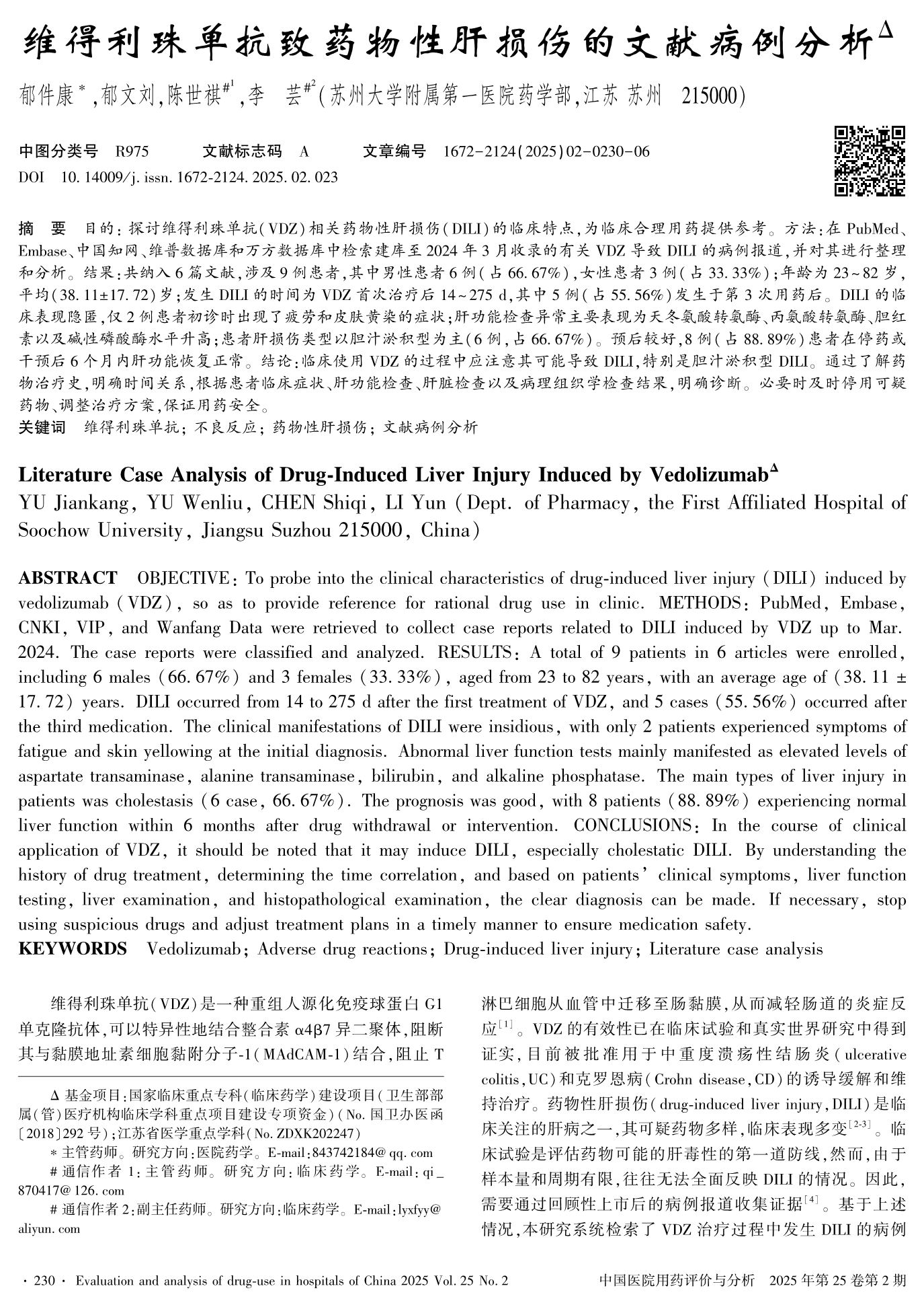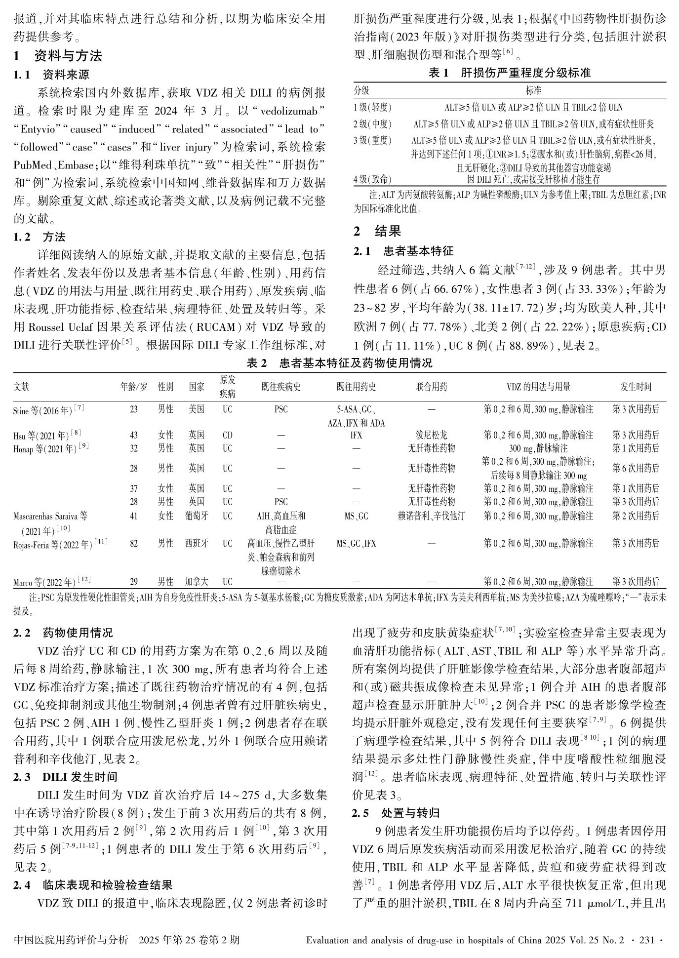維得利珠單抗致藥物性肝損傷的文獻病例分析