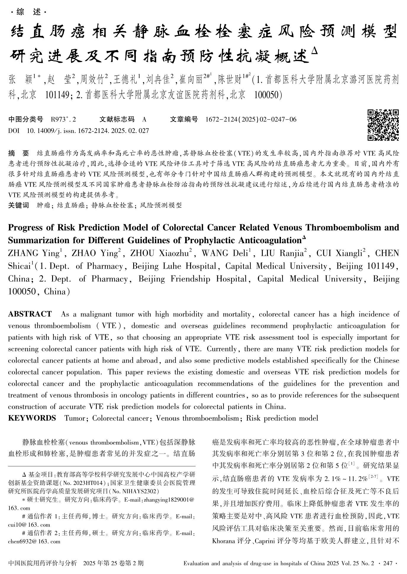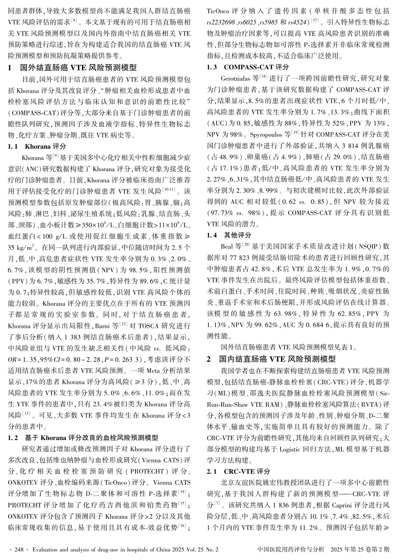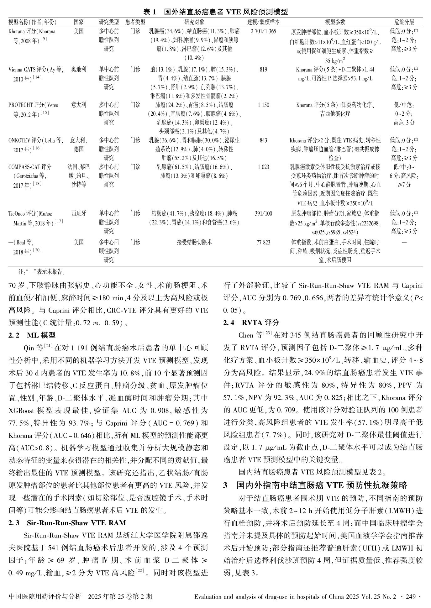 結(jié)直腸癌相關(guān)靜脈血栓栓塞癥風(fēng)險(xiǎn)預(yù)測模型研究進(jìn)展及不同指南預(yù)防性抗凝概述