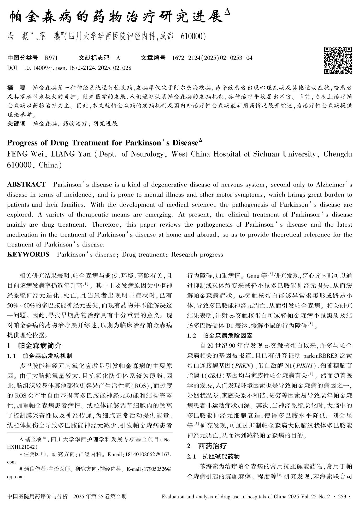 Progress of Drug Treatment for Parkinson’s Disease