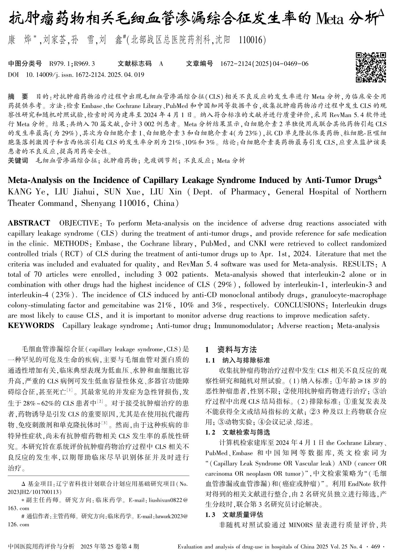 抗腫瘤藥物相關(guān)毛細(xì)血管滲漏綜合征發(fā)生率的Meta分析