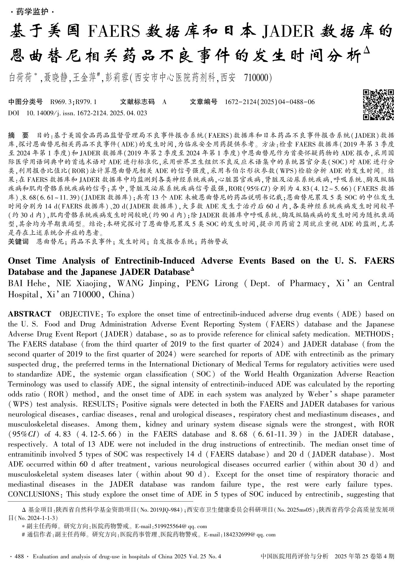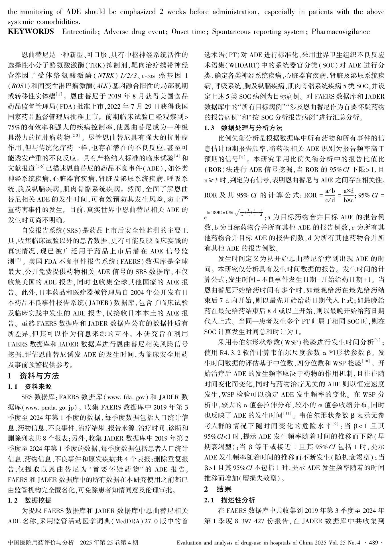 基于美國(guó)FAERS數(shù)據(jù)庫(kù)和日本JADER數(shù)據(jù)庫(kù)的恩曲替尼相關(guān)藥品不良事件的發(fā)生時(shí)間分析