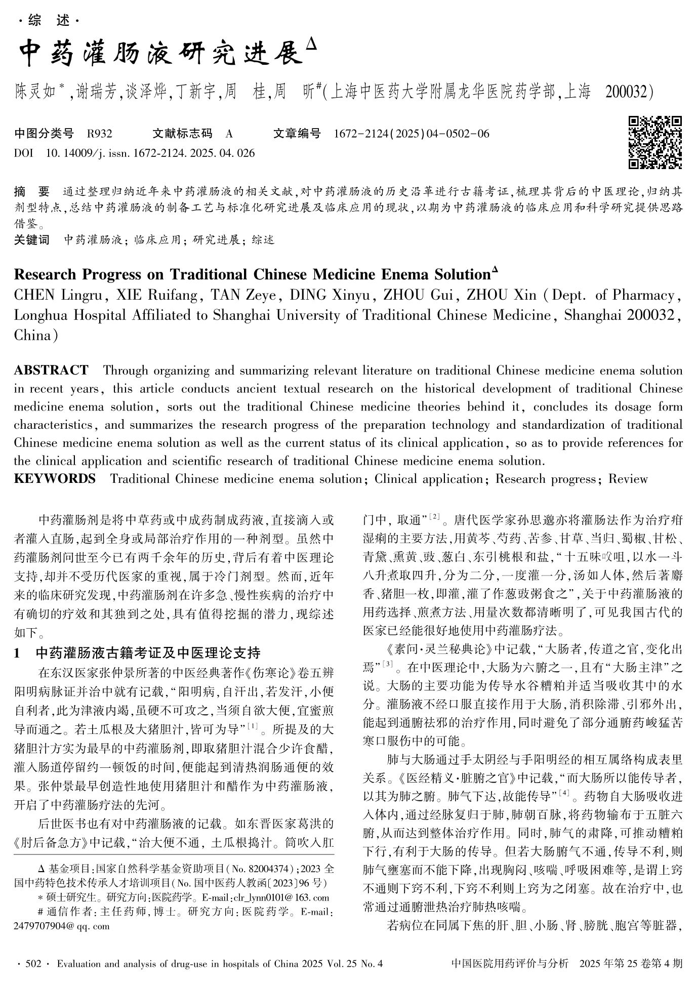 中藥灌腸液研究進展