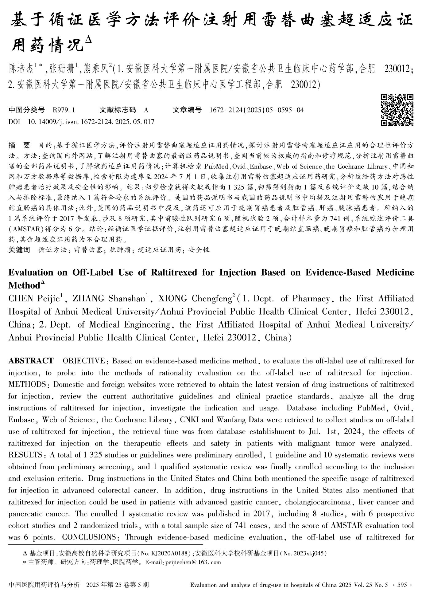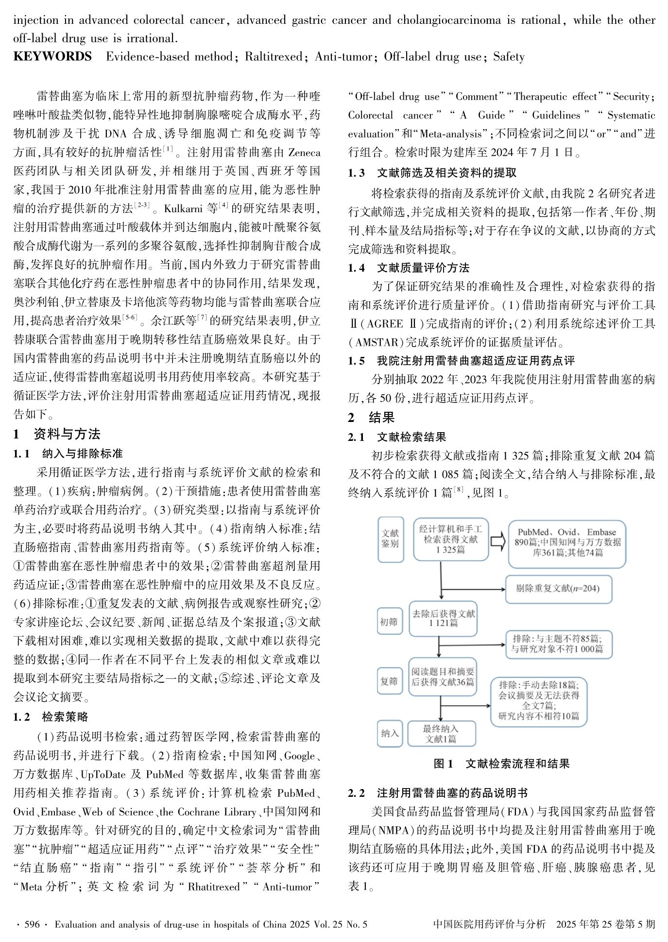基于循證醫(yī)學(xué)方法評價注射用雷替曲塞超適應(yīng)證用藥情況