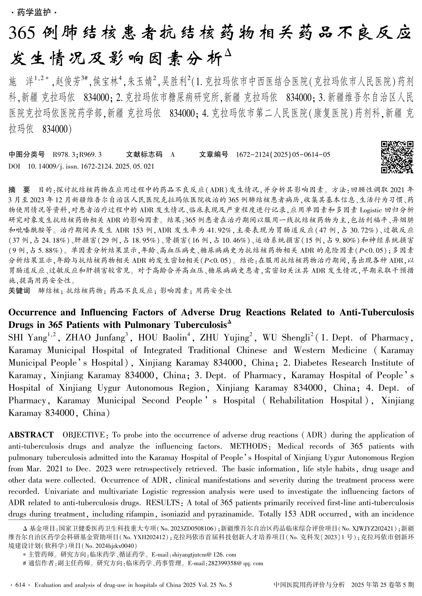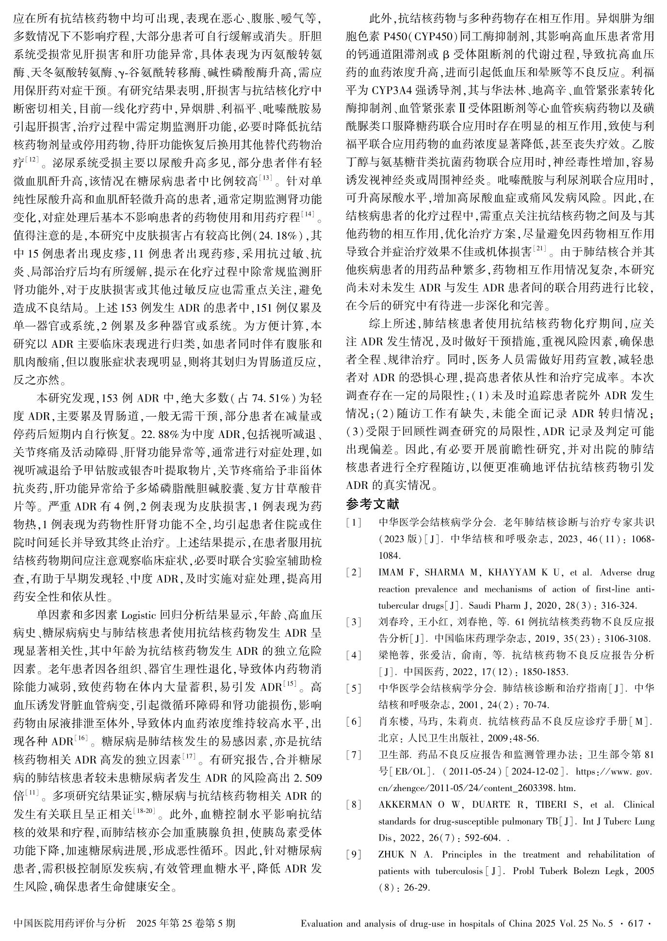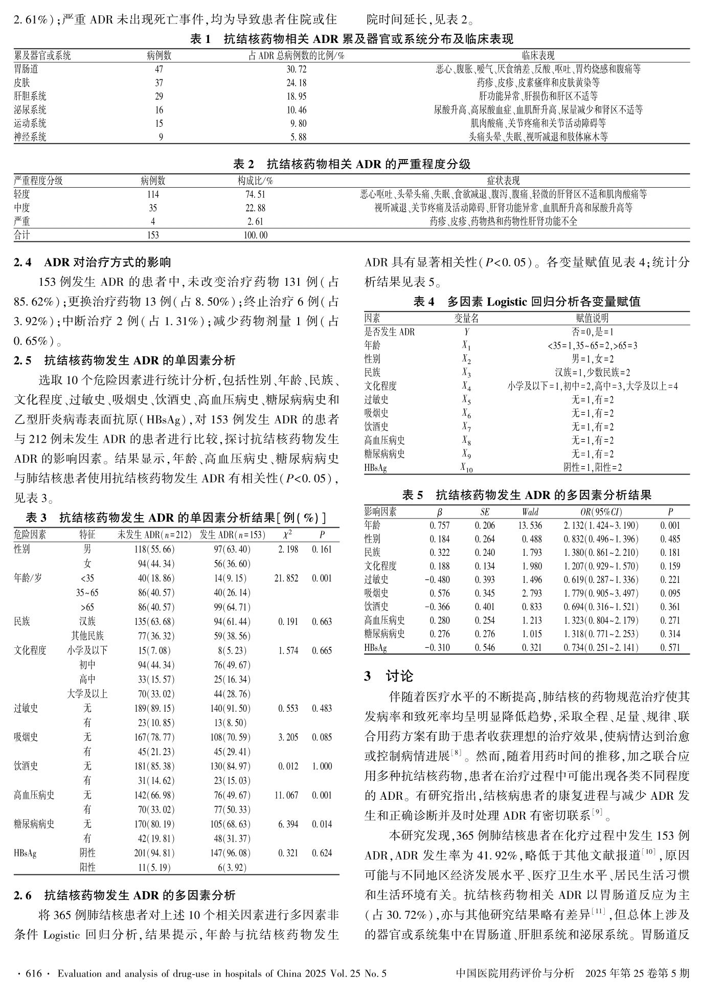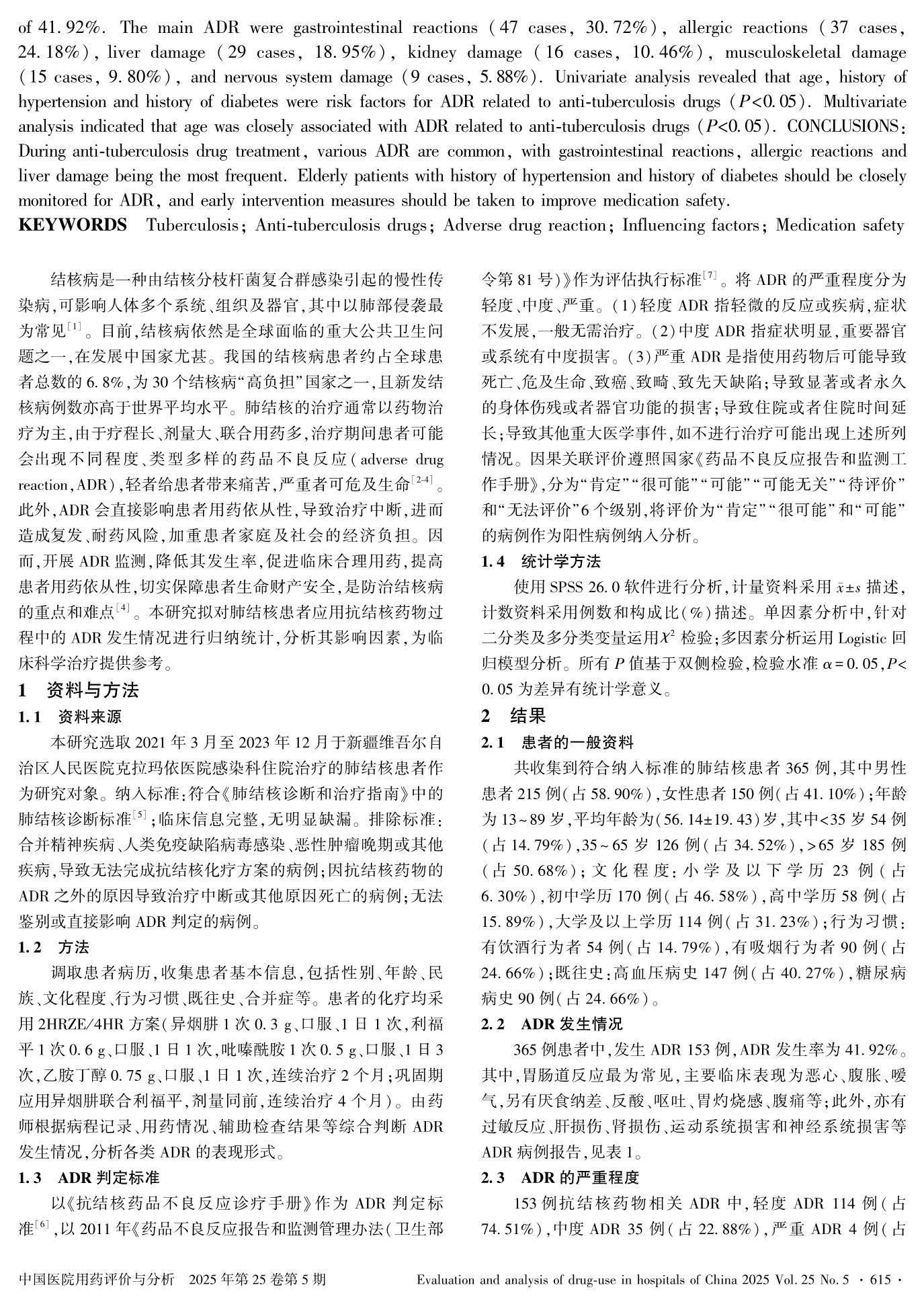 365例肺結(jié)核患者抗結(jié)核藥物相關(guān)藥品不良反應(yīng)發(fā)生情況及影響因素分析