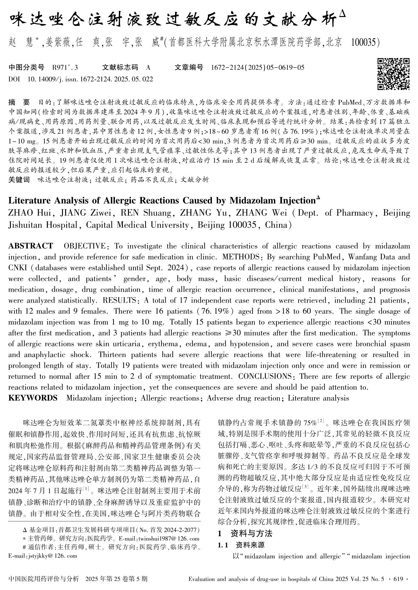 咪達唑侖注射液致過敏反應(yīng)的文獻分析