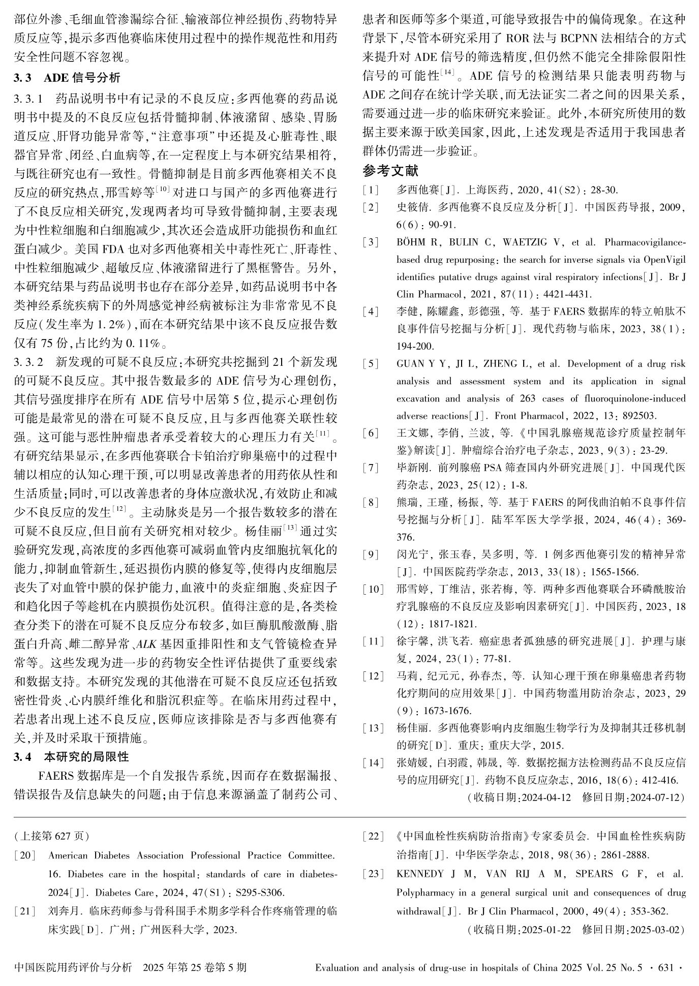 基于美國FAERS數(shù)據(jù)庫的多西他賽相關(guān)藥品不良事件信號挖掘與分析