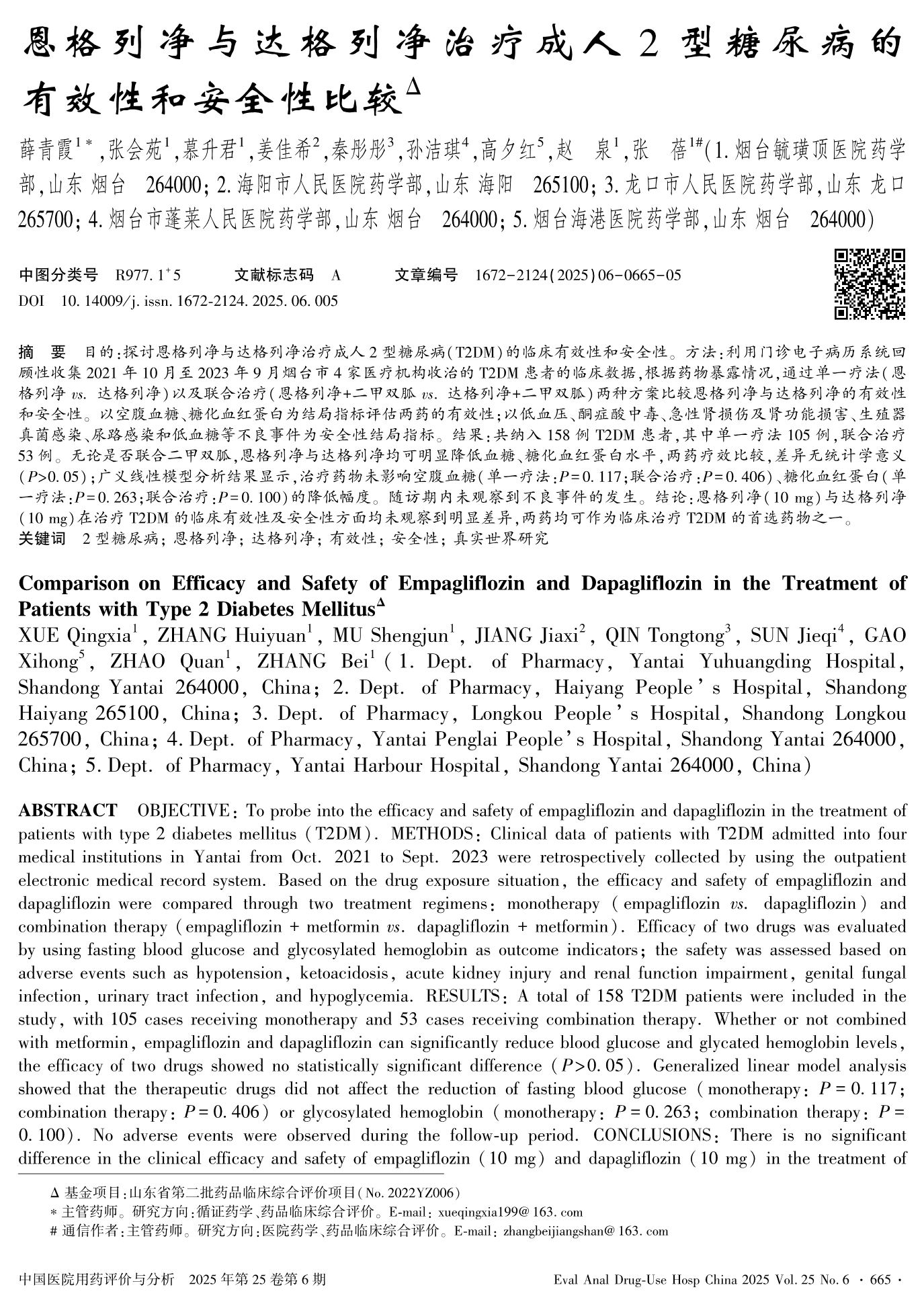 Comparison on Efficacy and Safety of Empagliflozin and Dapagliflozin in the Treatment of Patients with Type 2 Diabetes Mellitus