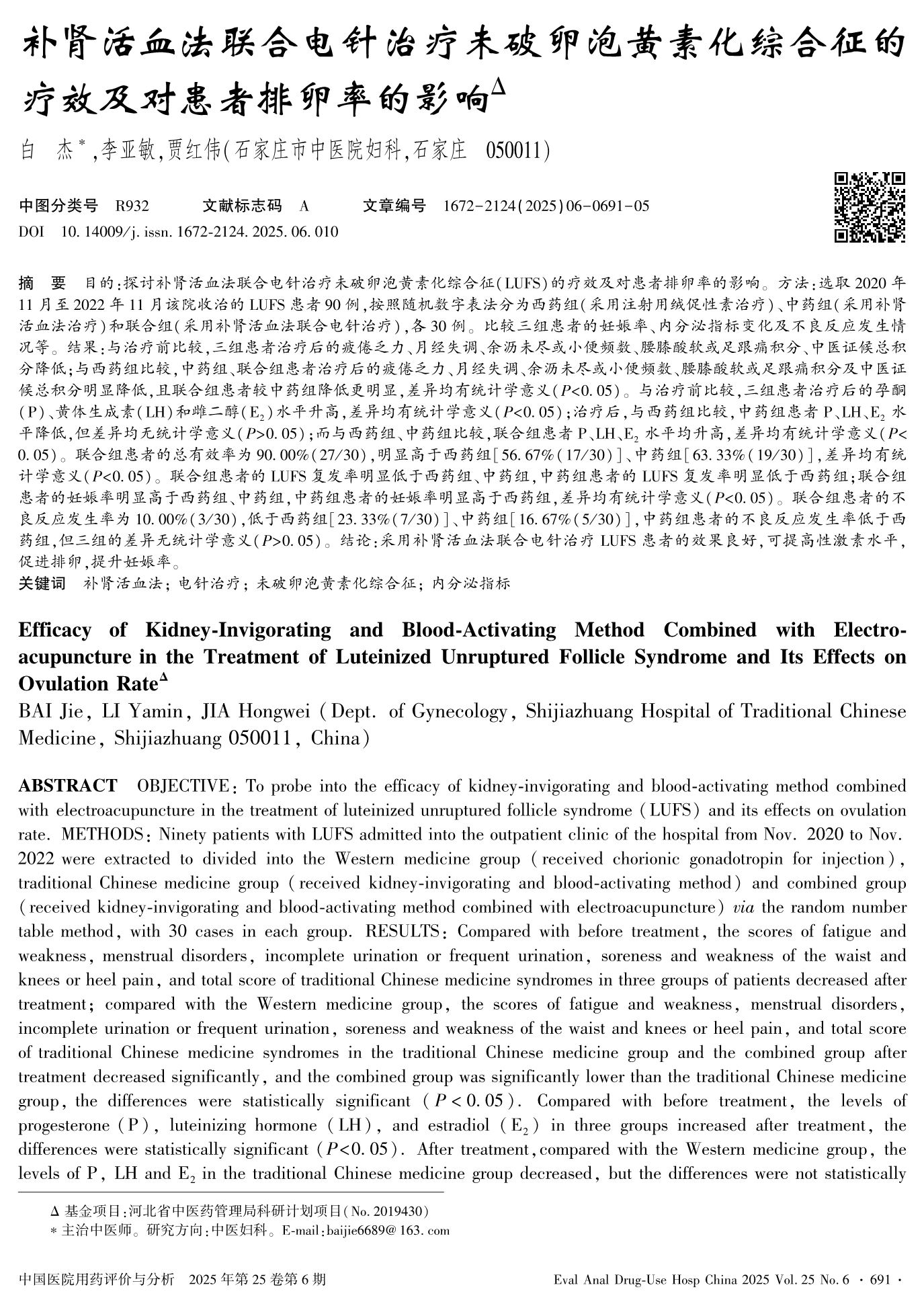 補(bǔ)腎活血法聯(lián)合電針治療未破卵泡黃素化綜合征的療效及對(duì)患者排卵率的影響