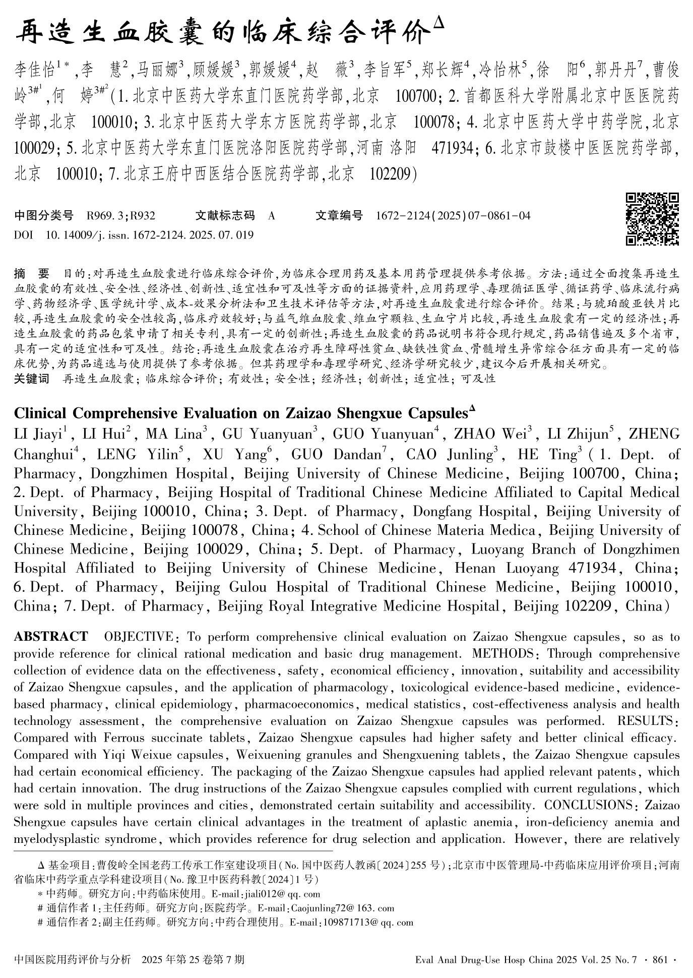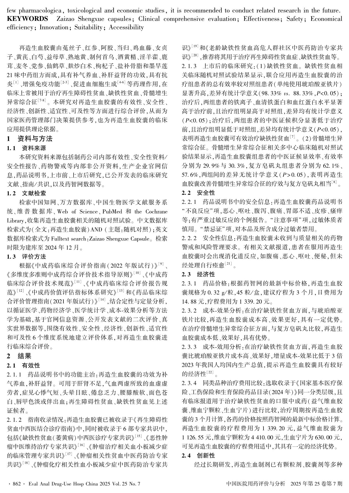 再造生血膠囊的臨床綜合評(píng)價(jià)