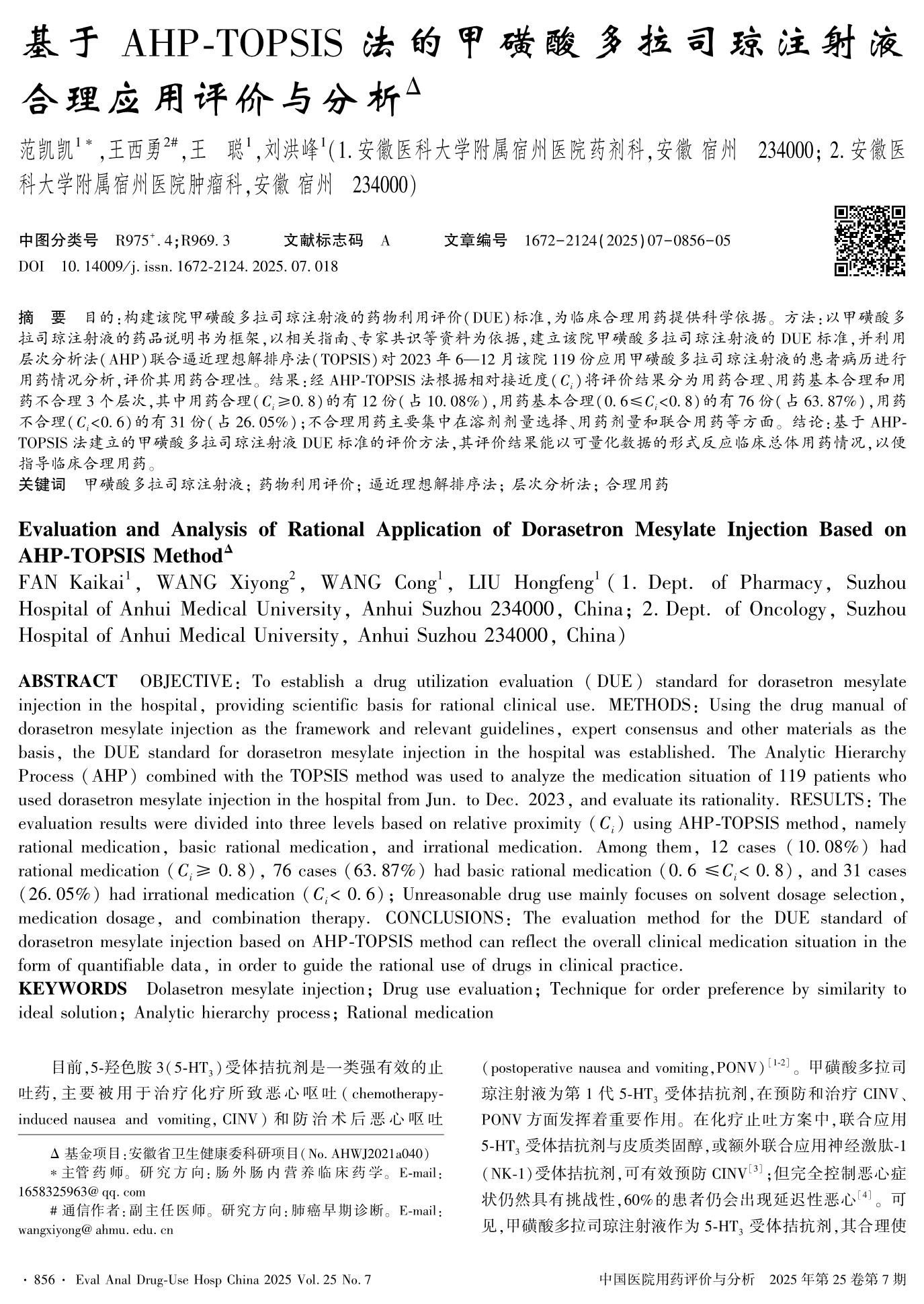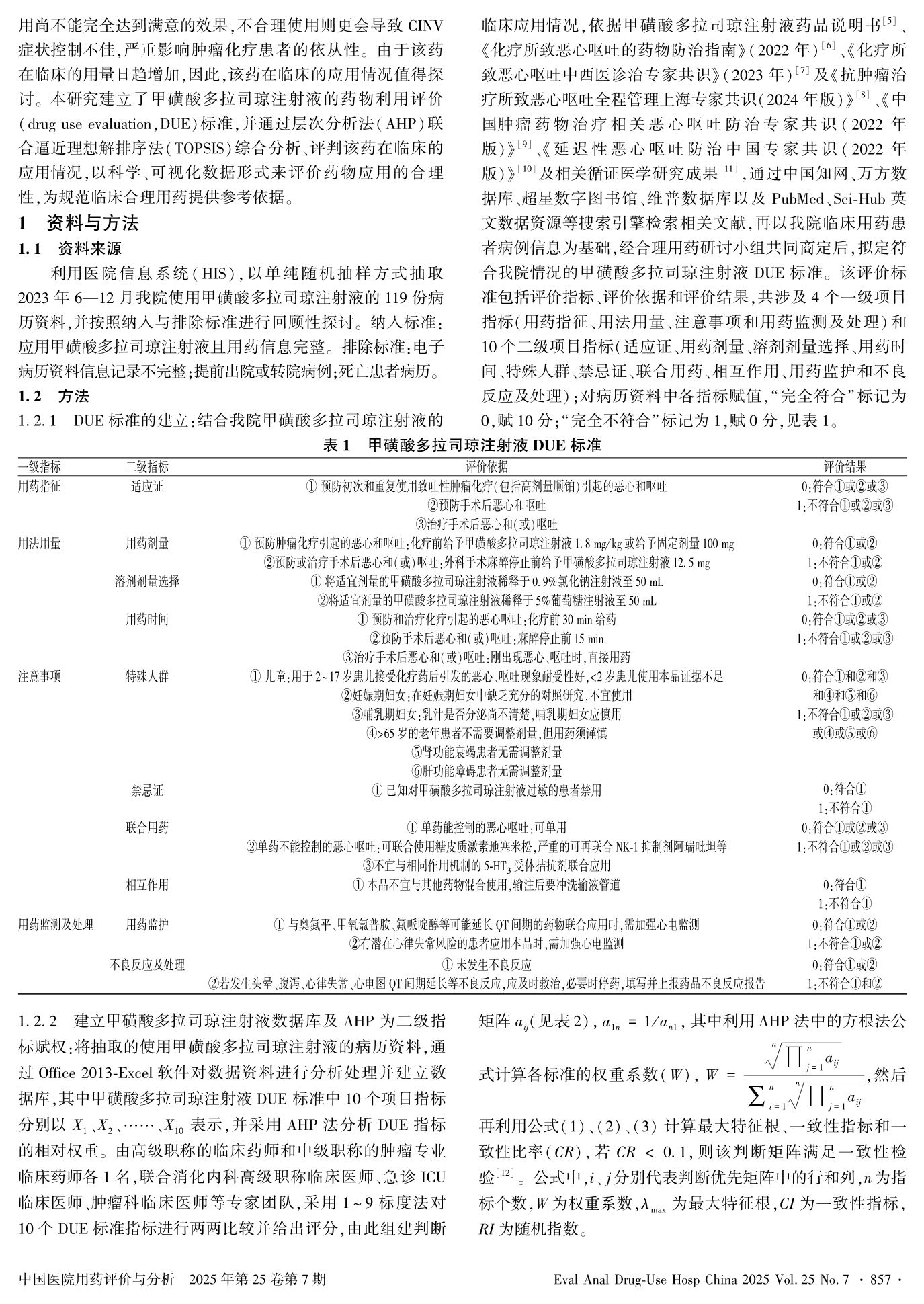 基于AHP-TOPSIS法的甲磺酸多拉司瓊注射液合理應(yīng)用評(píng)價(jià)與分析