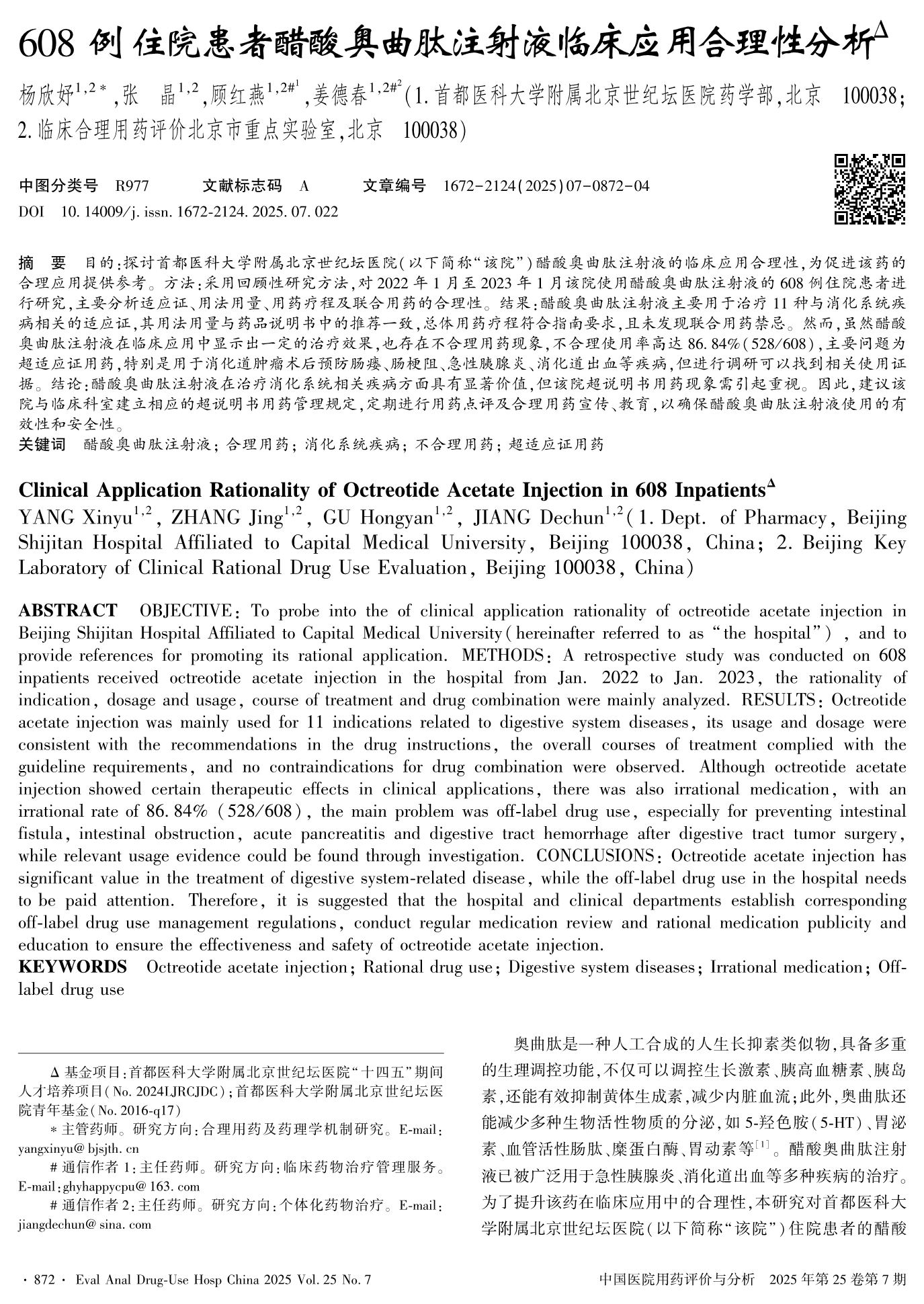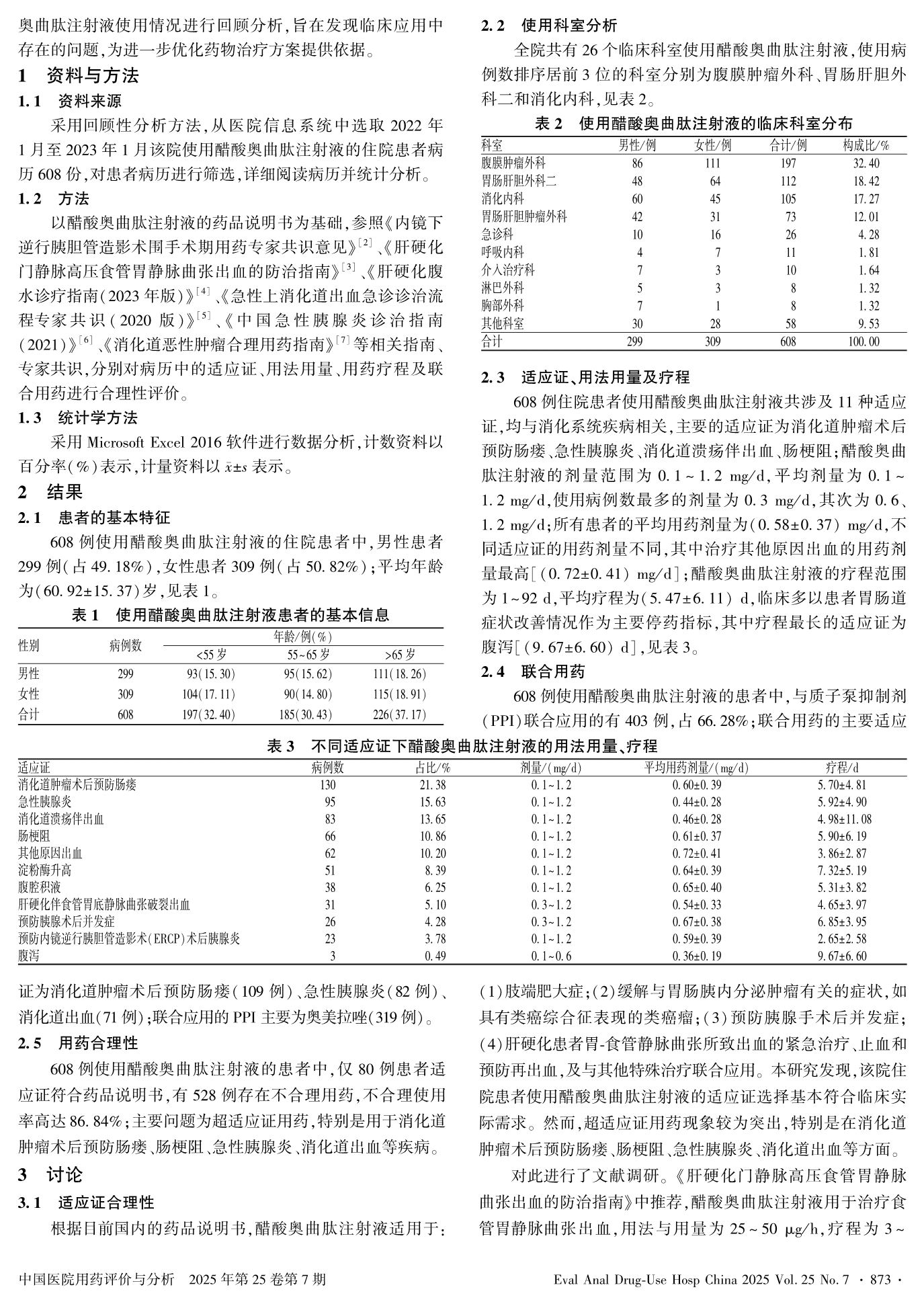 608例住院患者醋酸奧曲肽注射液臨床應(yīng)用合理性分析