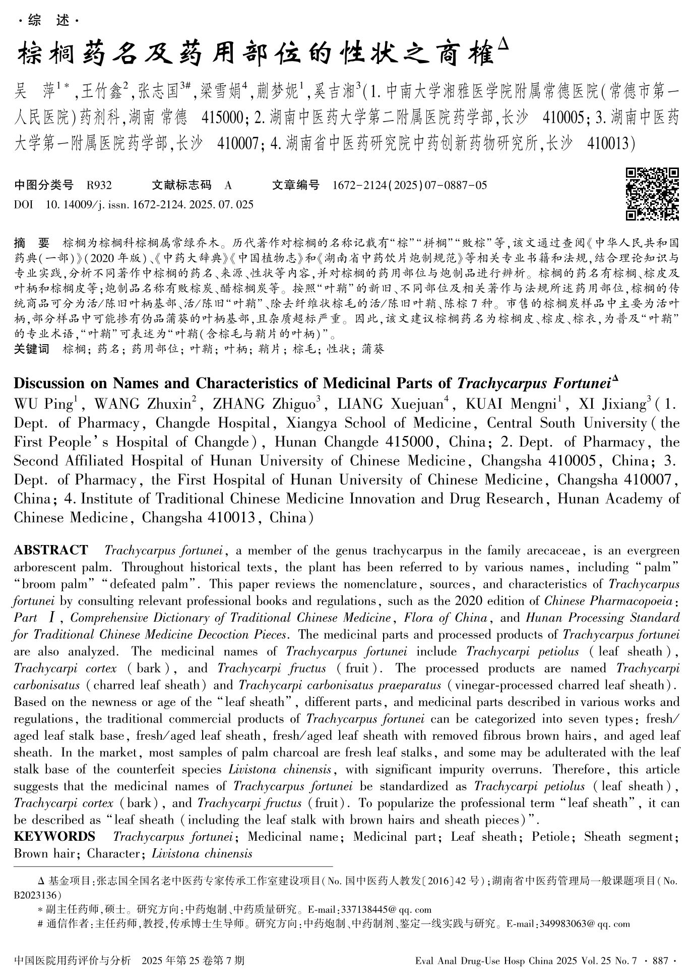 棕櫚藥名及藥用部位的性狀之商榷