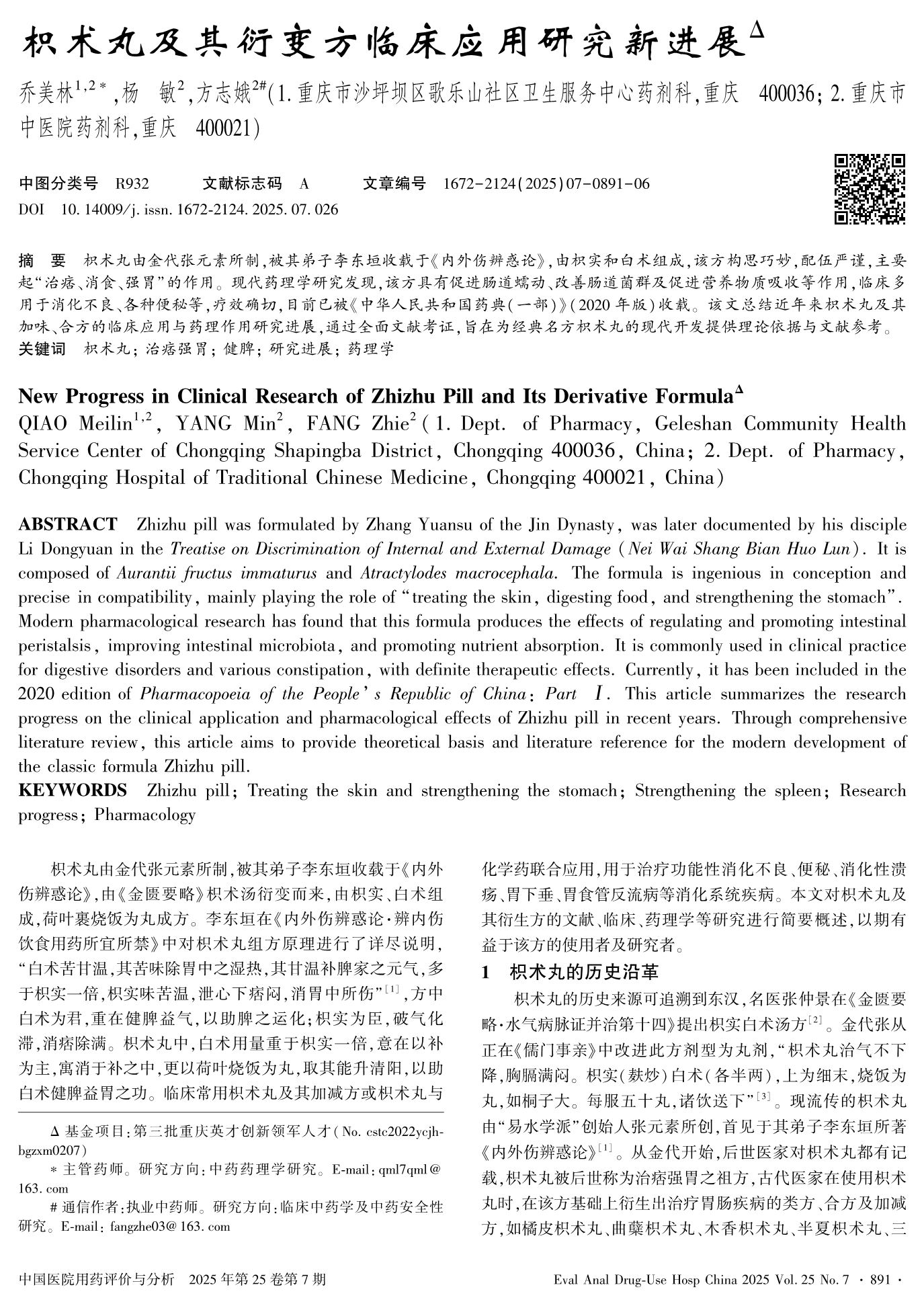 枳術(shù)丸及其衍變方臨床應(yīng)用研究新進(jìn)展