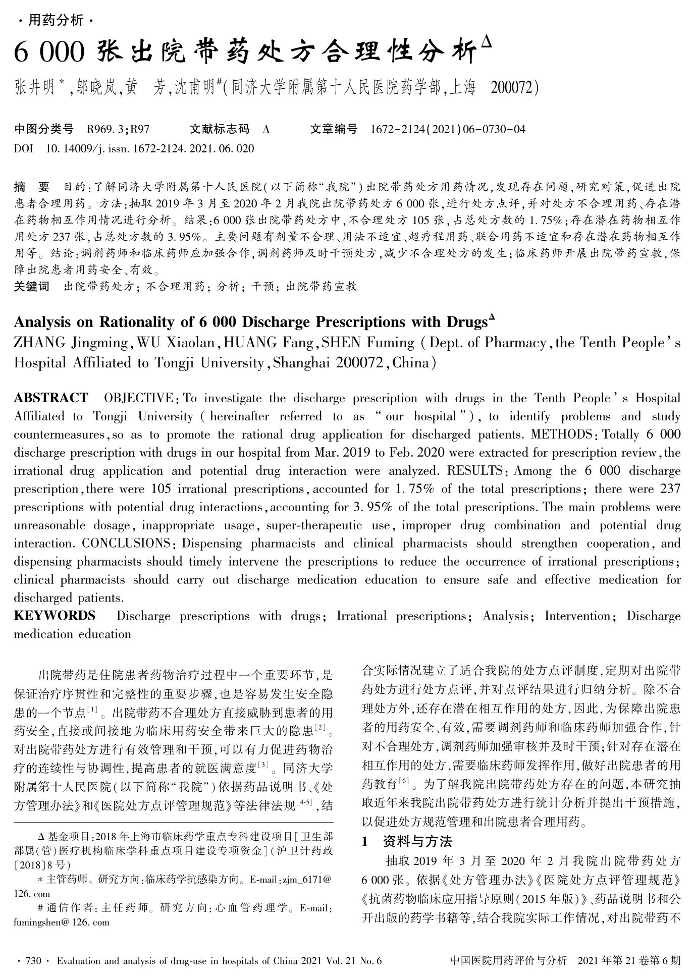 6000張出院帶藥處方合理性分析