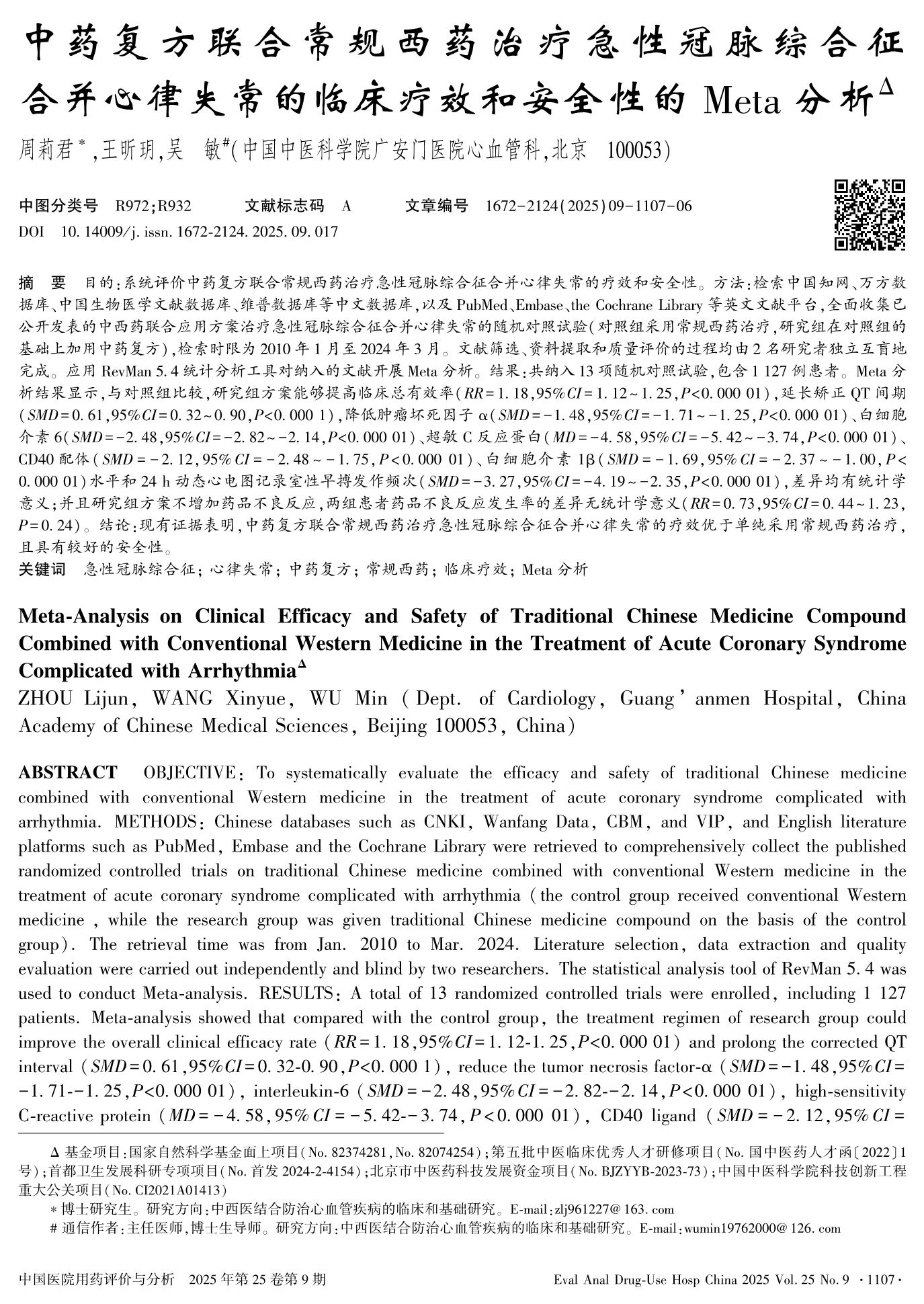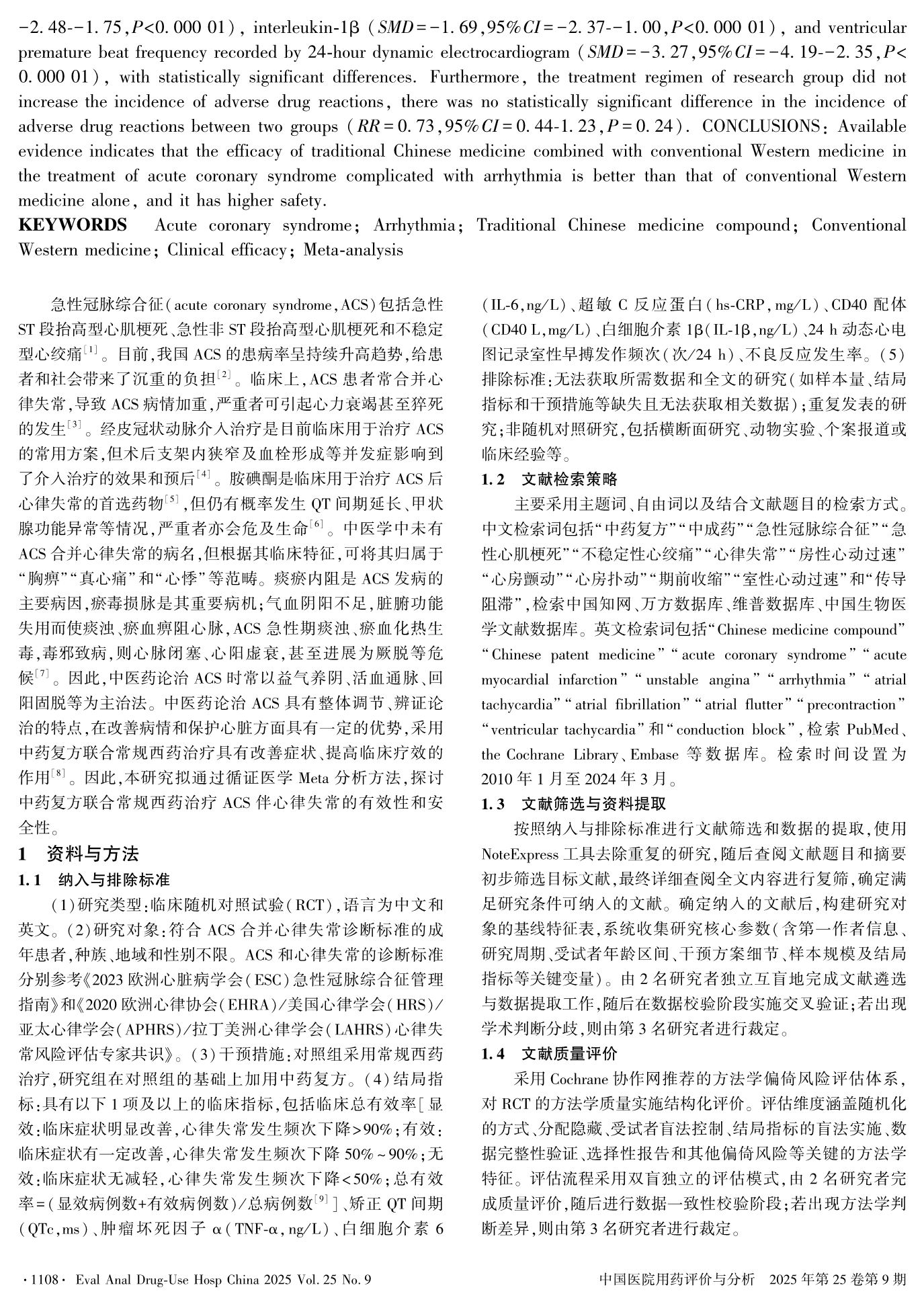 中藥復(fù)方聯(lián)合常規(guī)西藥治療急性冠脈綜合征合并心律失常的臨床療效和安全性的Meta分析