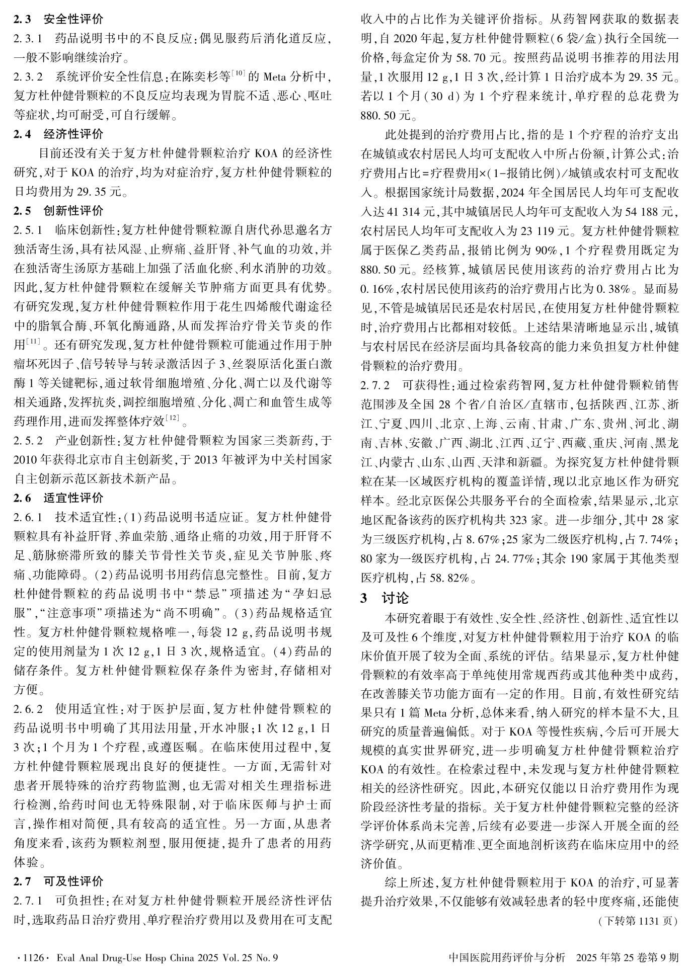復(fù)方杜仲健骨顆粒治療膝骨關(guān)節(jié)炎的綜合評(píng)價(jià)