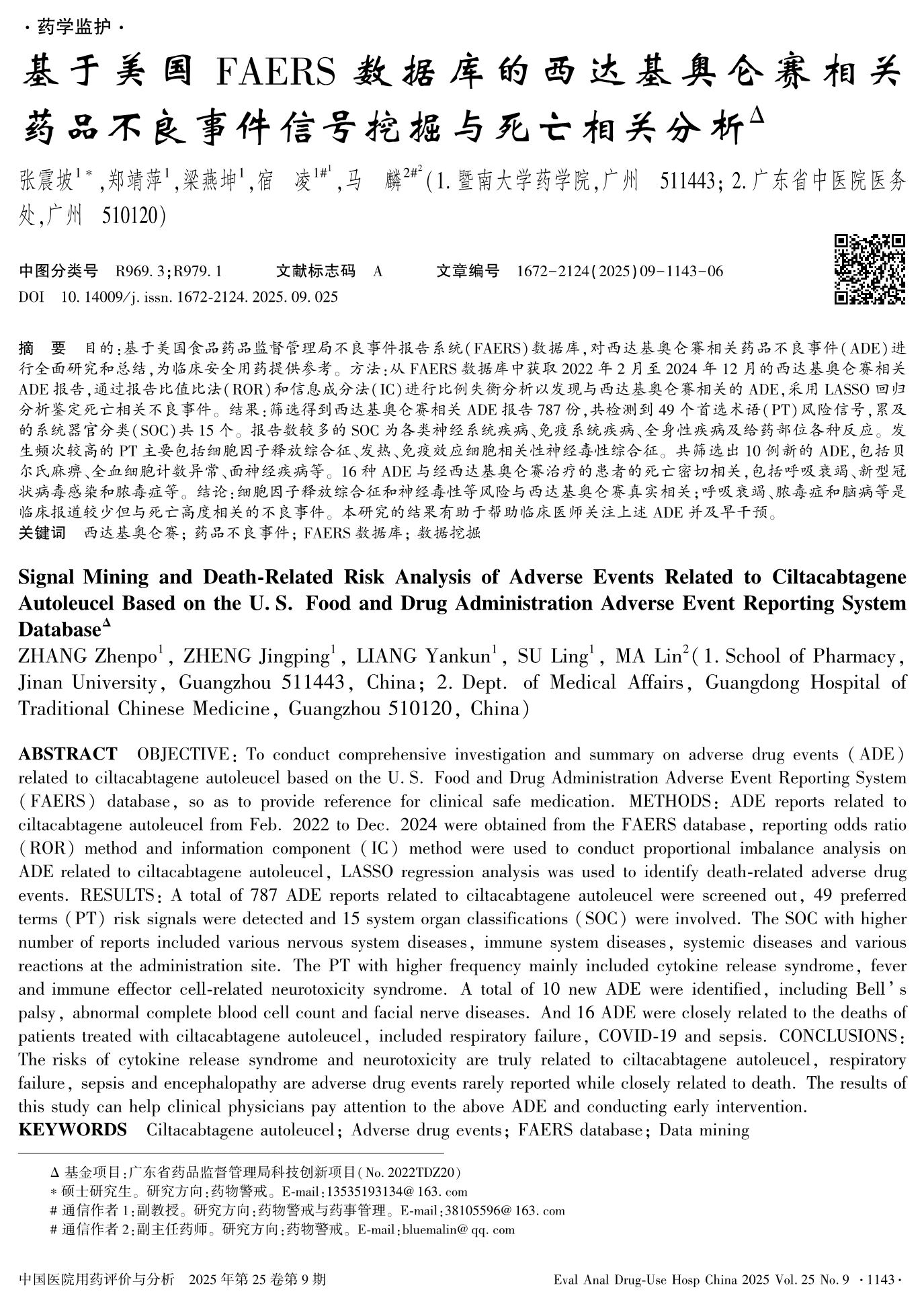基于美國FAERS數(shù)據(jù)庫的西達(dá)基奧侖賽相關(guān)藥品不良事件信號挖掘與死亡相關(guān)分析