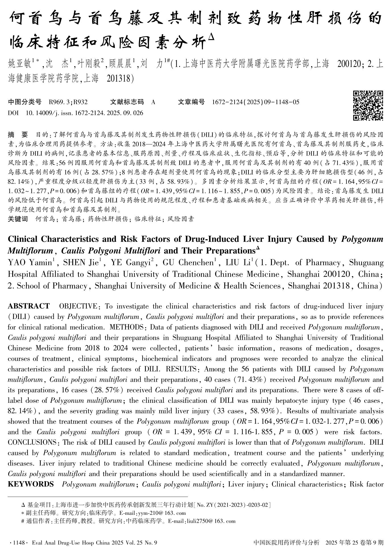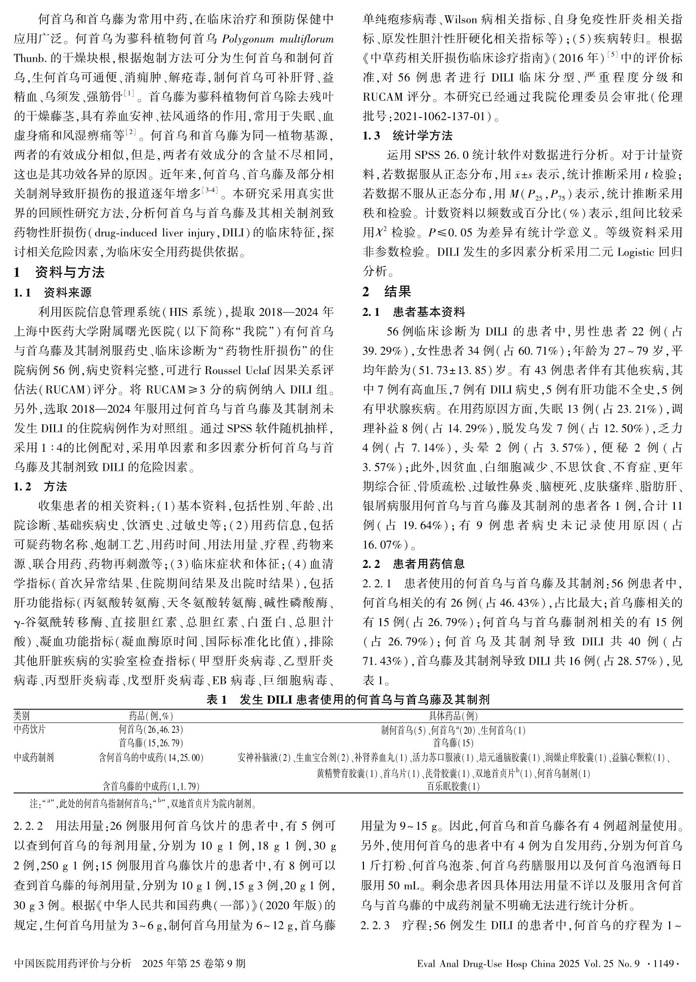 何首烏與首烏藤及其制劑致藥物性肝損傷的臨床特征和風(fēng)險(xiǎn)因素分析