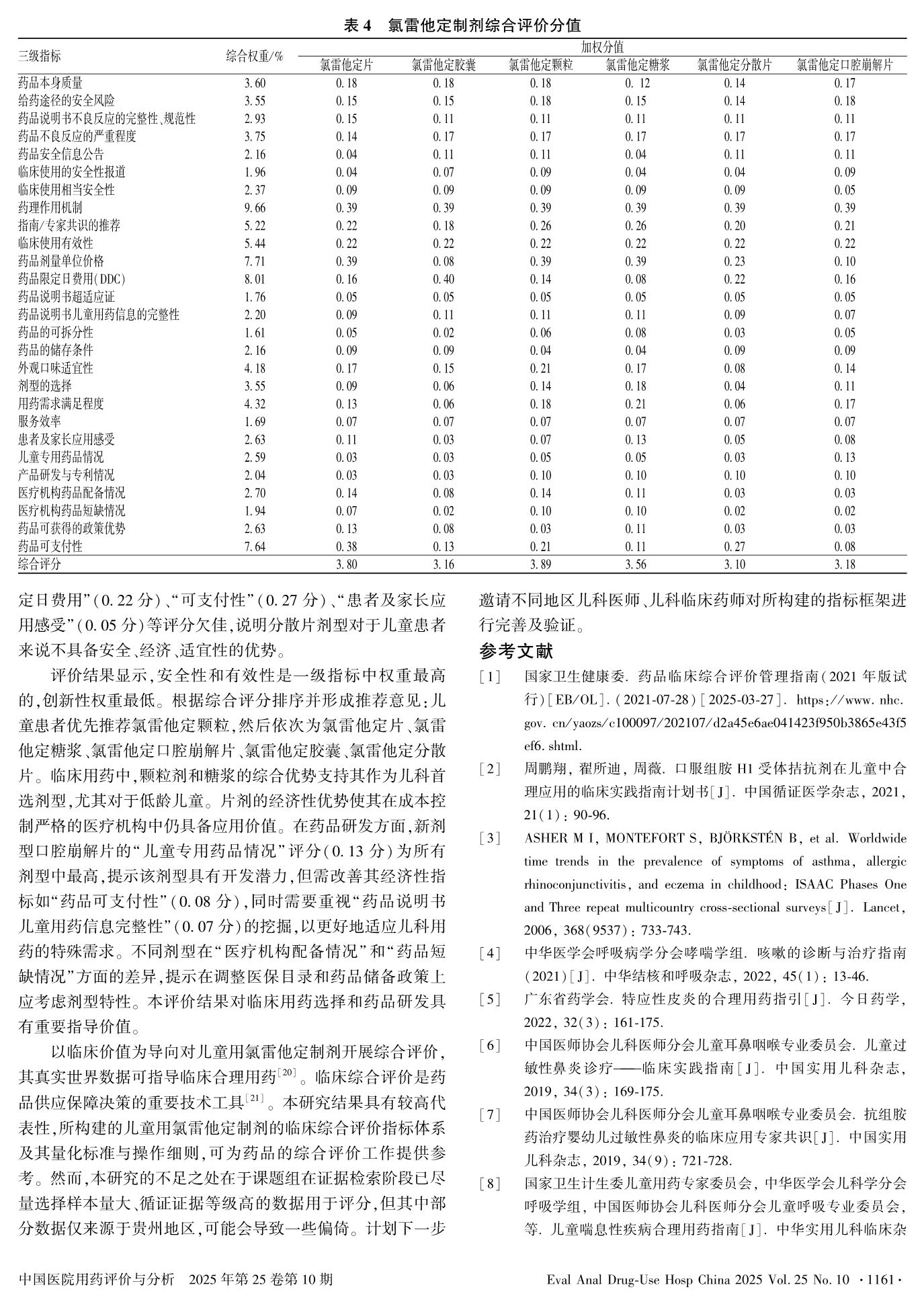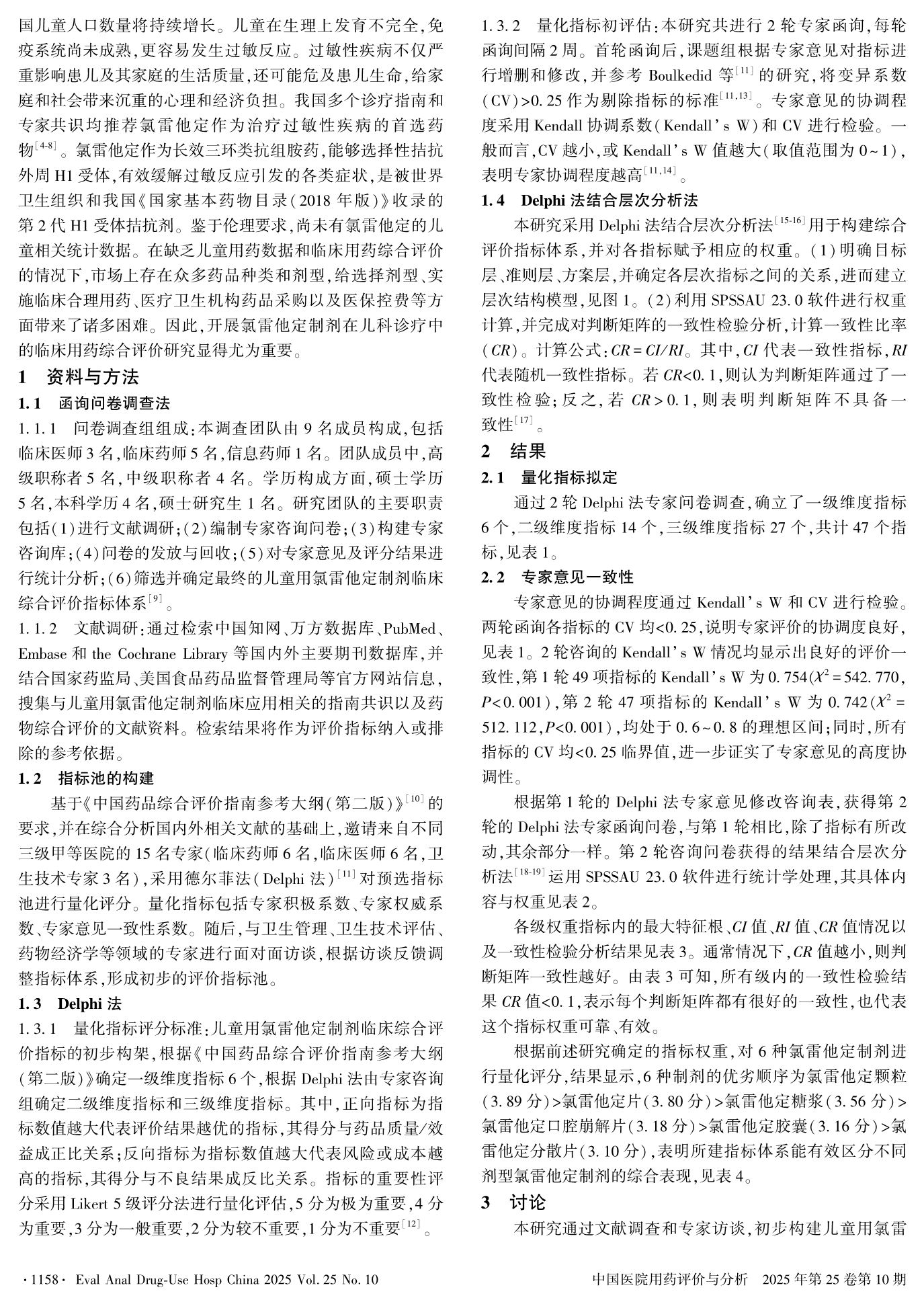 兒童用氯雷他定制劑的臨床綜合評(píng)價(jià)指標(biāo)體系構(gòu)建