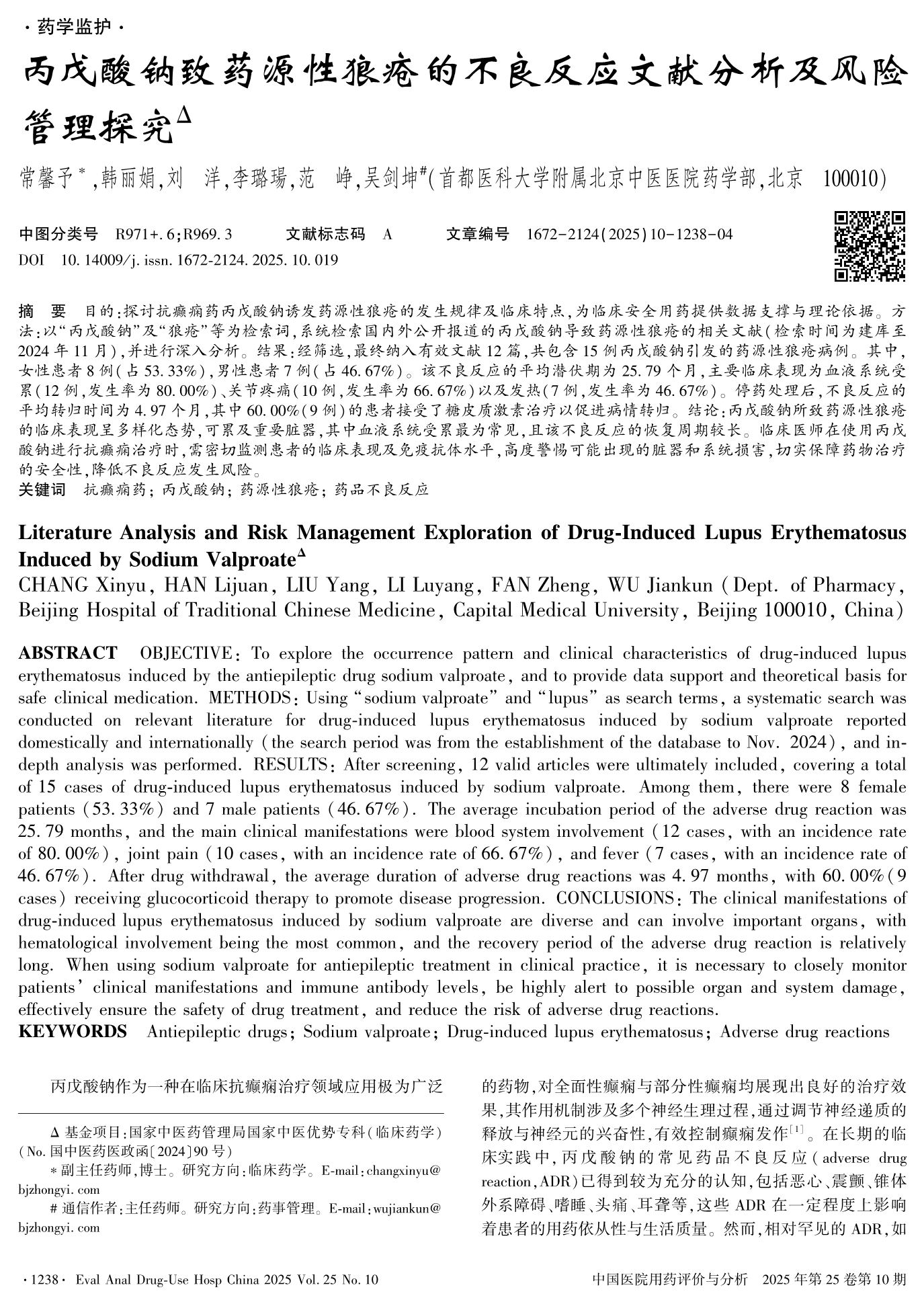 丙戊酸鈉致藥源性狼瘡的不良反應(yīng)文獻(xiàn)分析及風(fēng)險管理探究