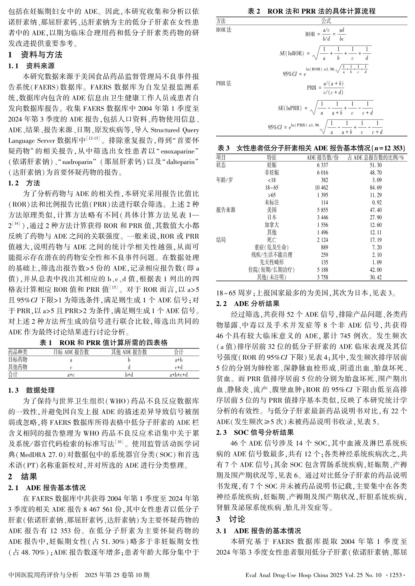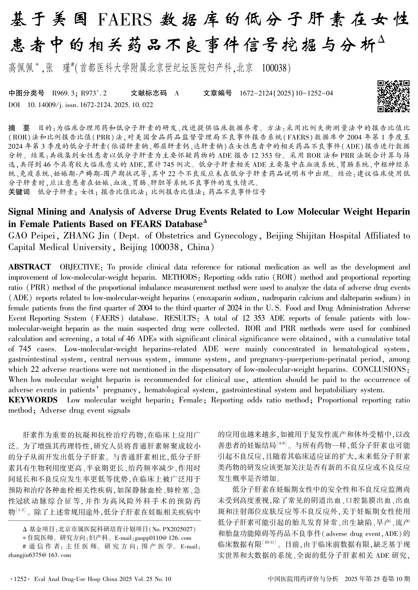 基于美國FAERS數(shù)據(jù)庫的低分子肝素在女性患者中的相關(guān)藥品不良事件信號挖掘與分析