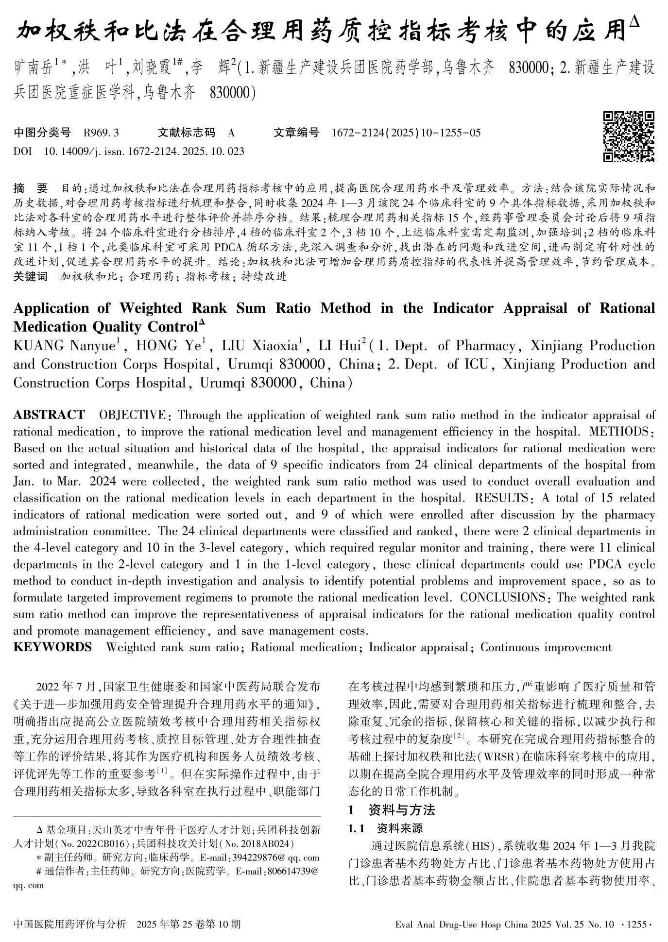 加權(quán)秩和比法在合理用藥質(zhì)控指標(biāo)考核中的應(yīng)用