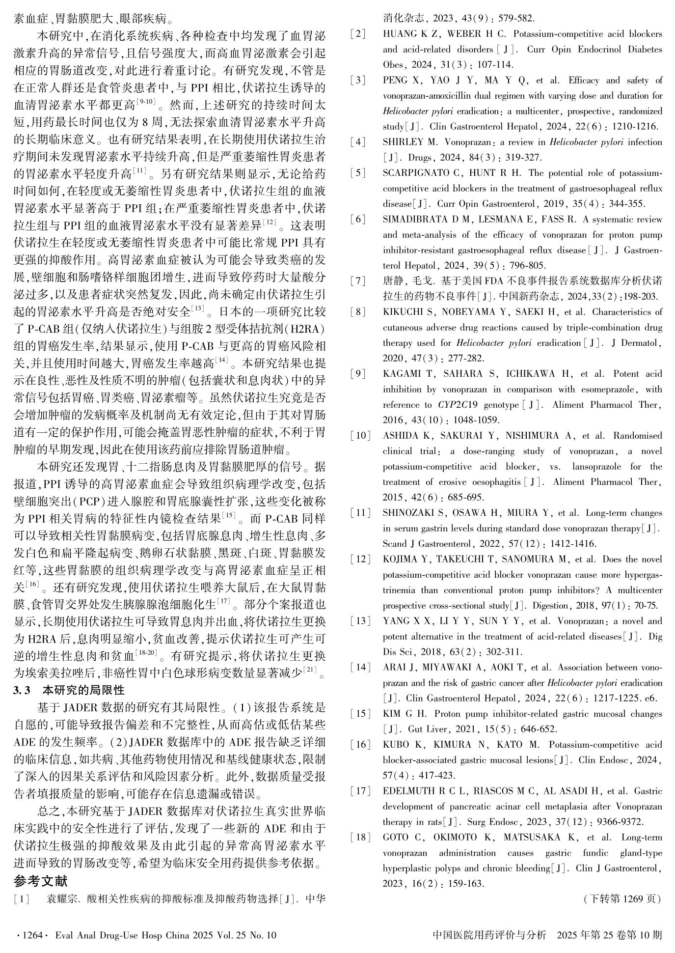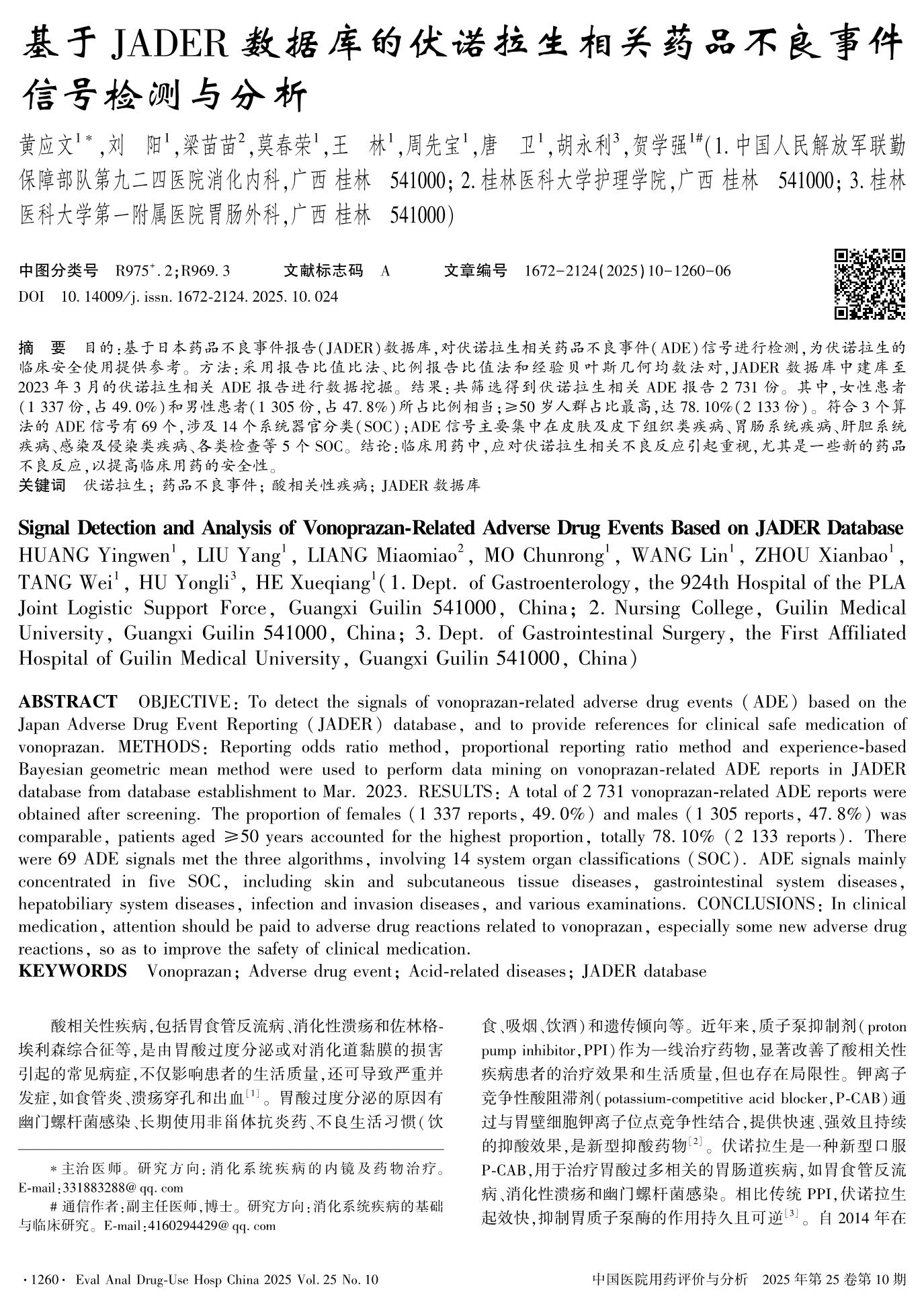 基于JADER數(shù)據(jù)庫(kù)的伏諾拉生相關(guān)藥品不良事件信號(hào)檢測(cè)與分析