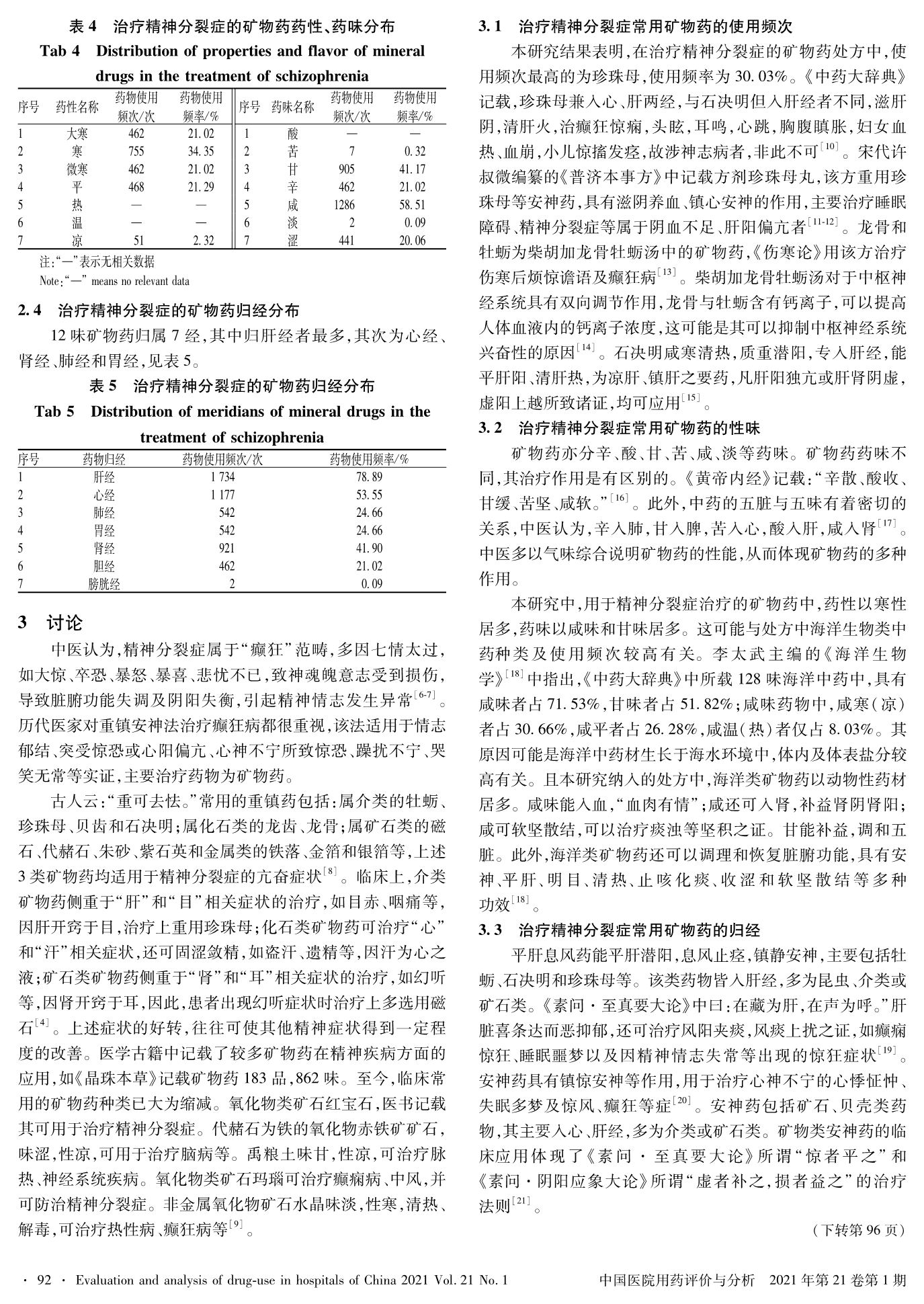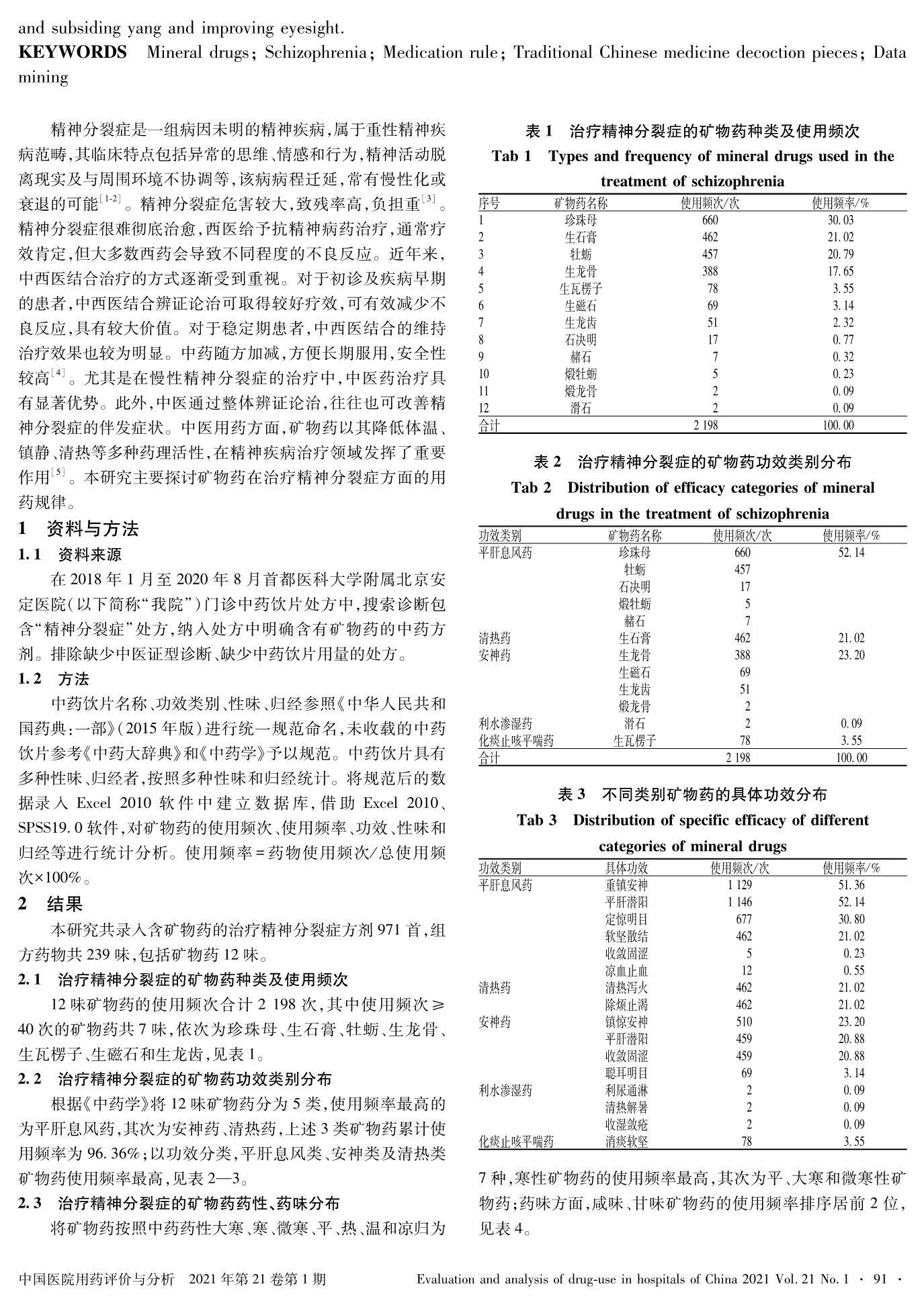 礦物藥治療精神分裂癥的用藥規(guī)律探析