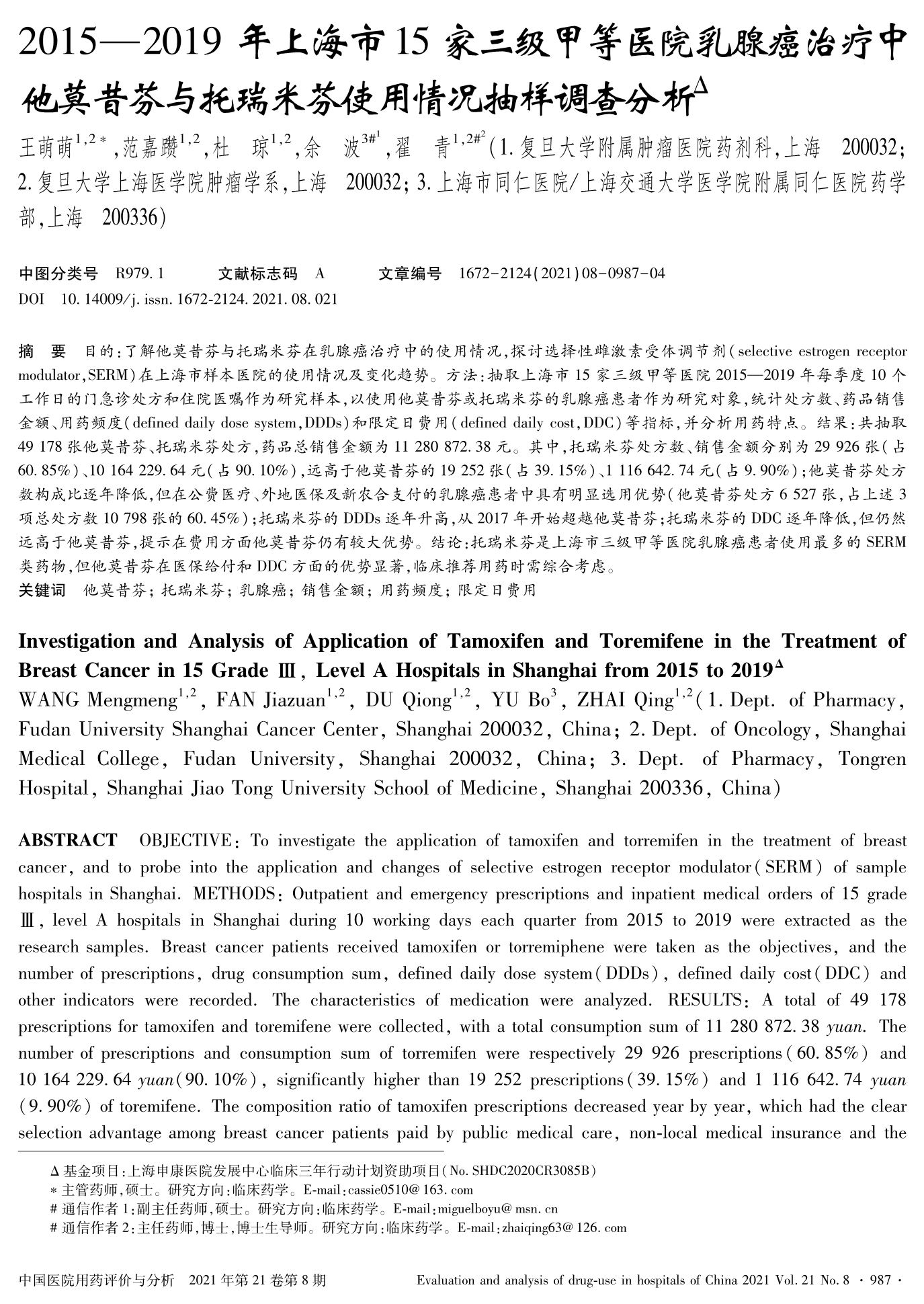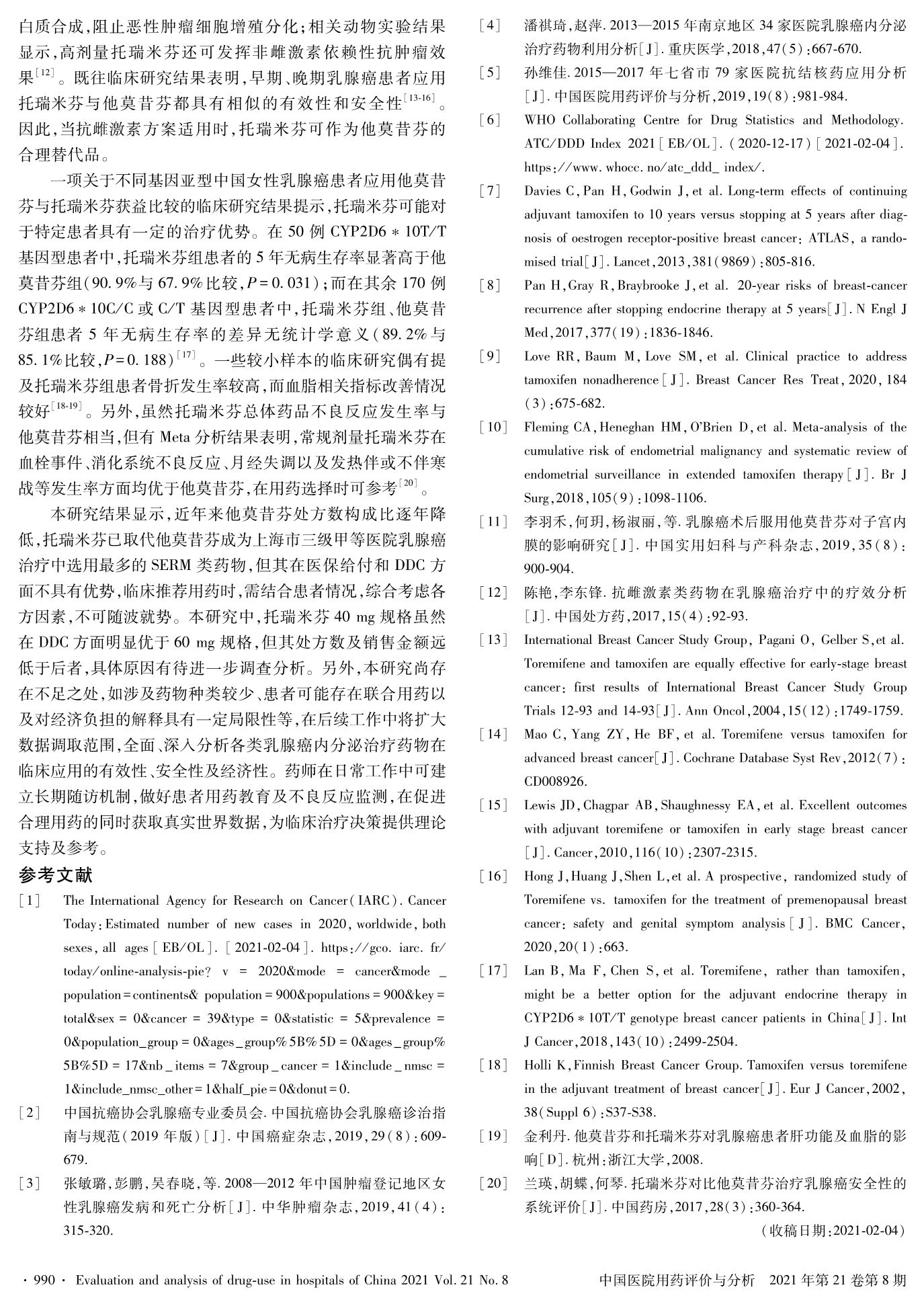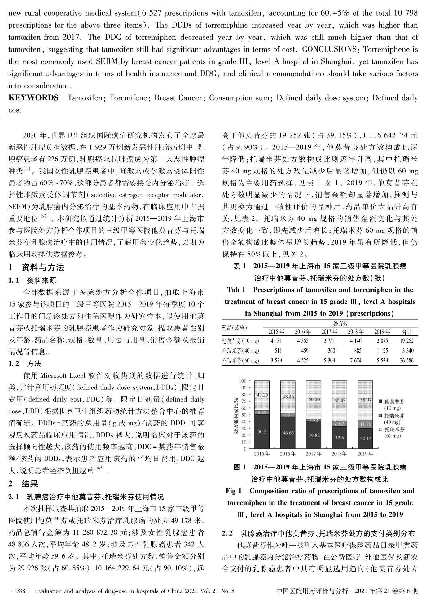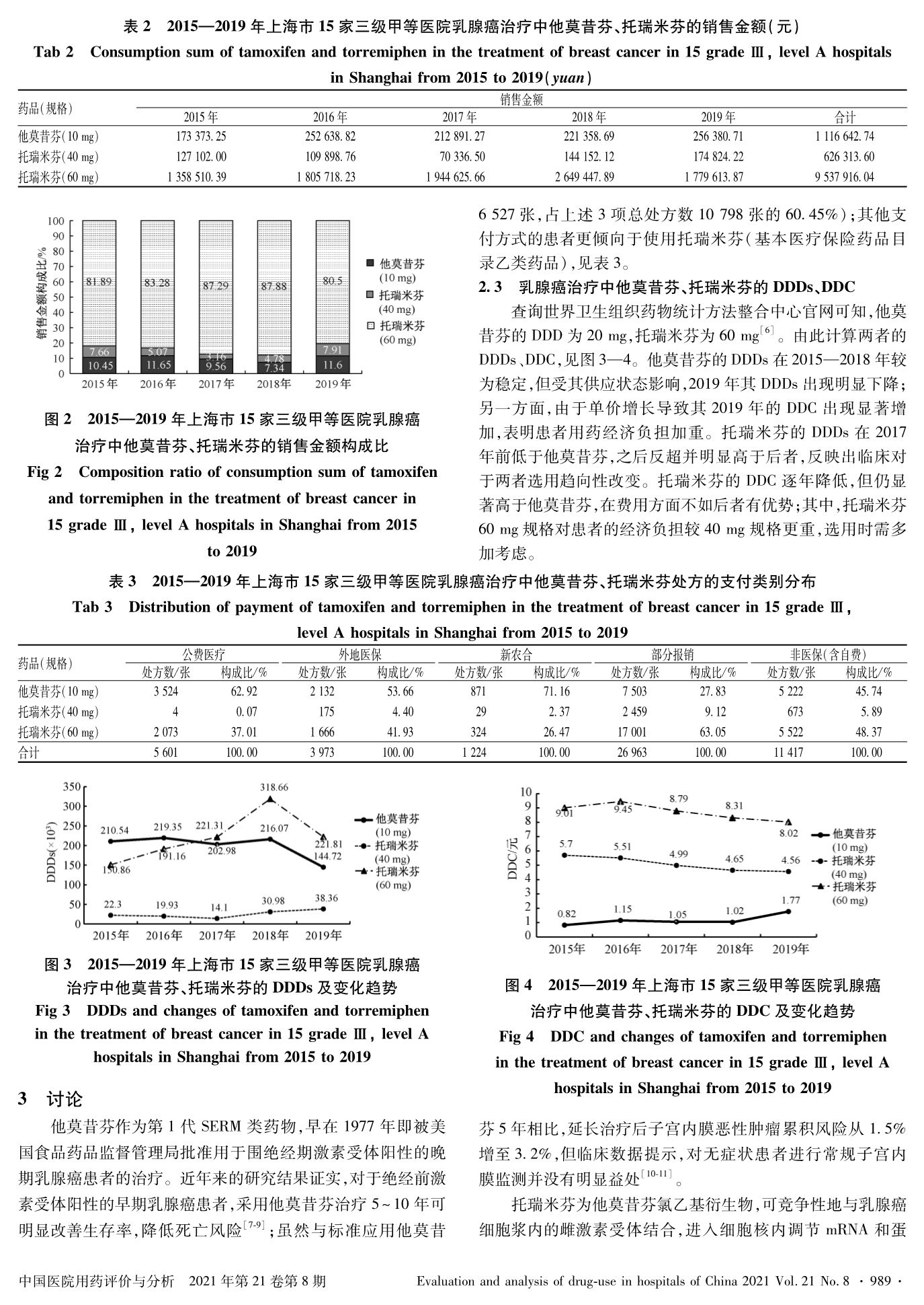 2015—2019年上海市15家三級甲等醫(yī)院乳腺癌治療中他莫昔芬與托瑞米芬使用情況抽樣調(diào)查分析