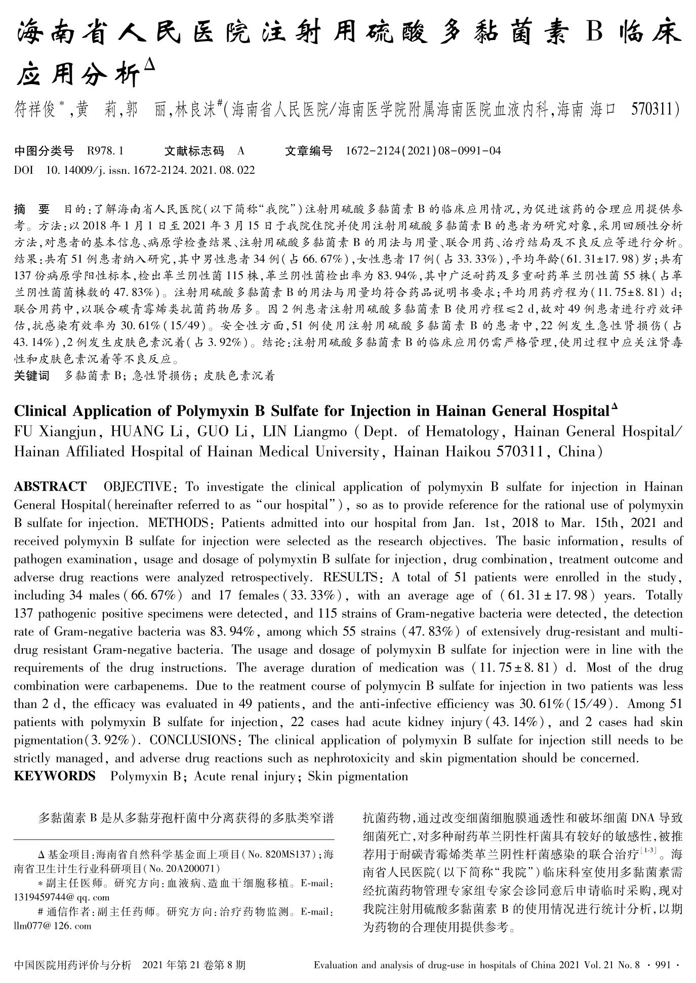 海南省人民醫(yī)院注射用硫酸多黏菌素B臨床應(yīng)用分析