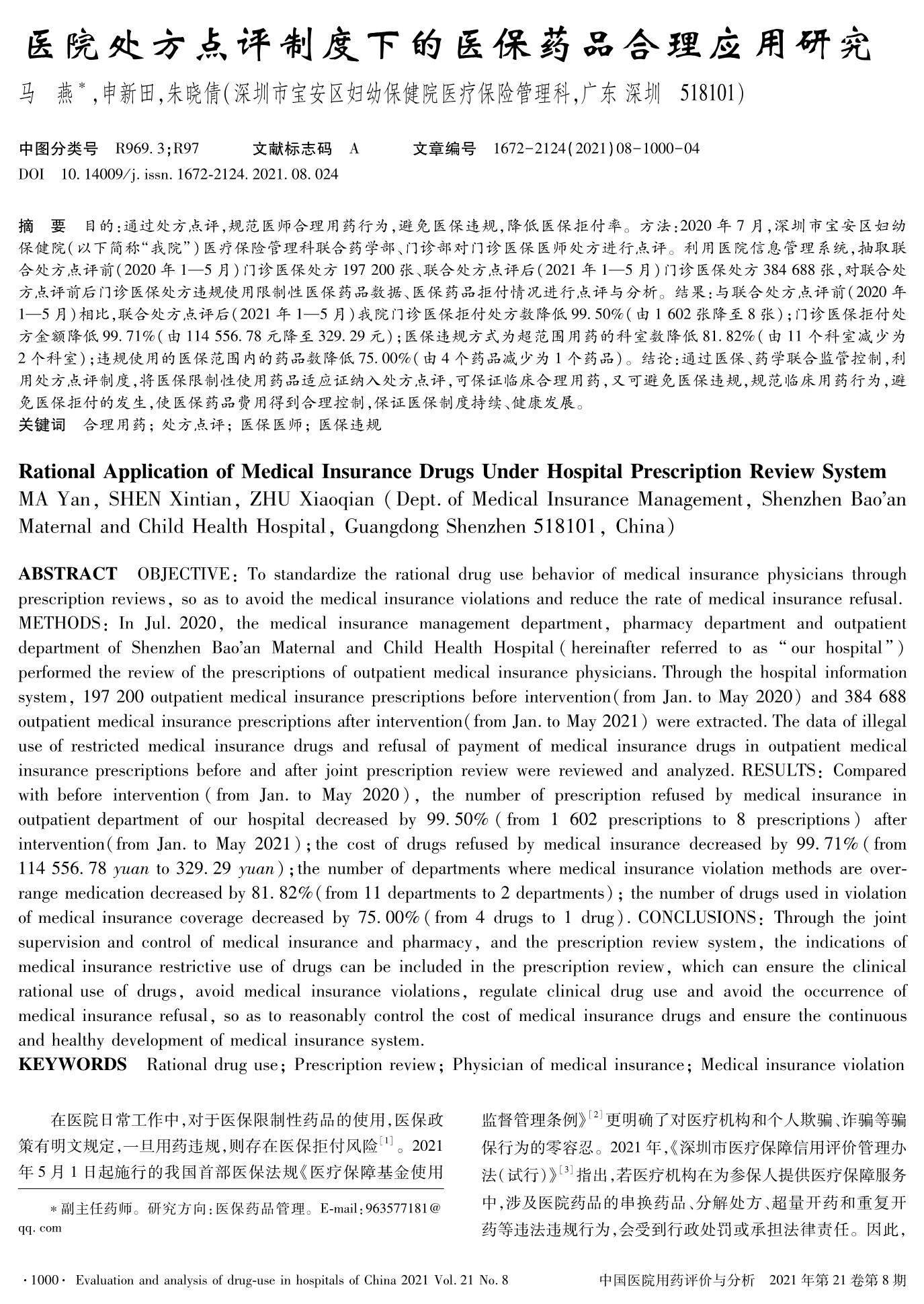 醫(yī)院處方點(diǎn)評(píng)制度下的醫(yī)保藥品合理應(yīng)用研究