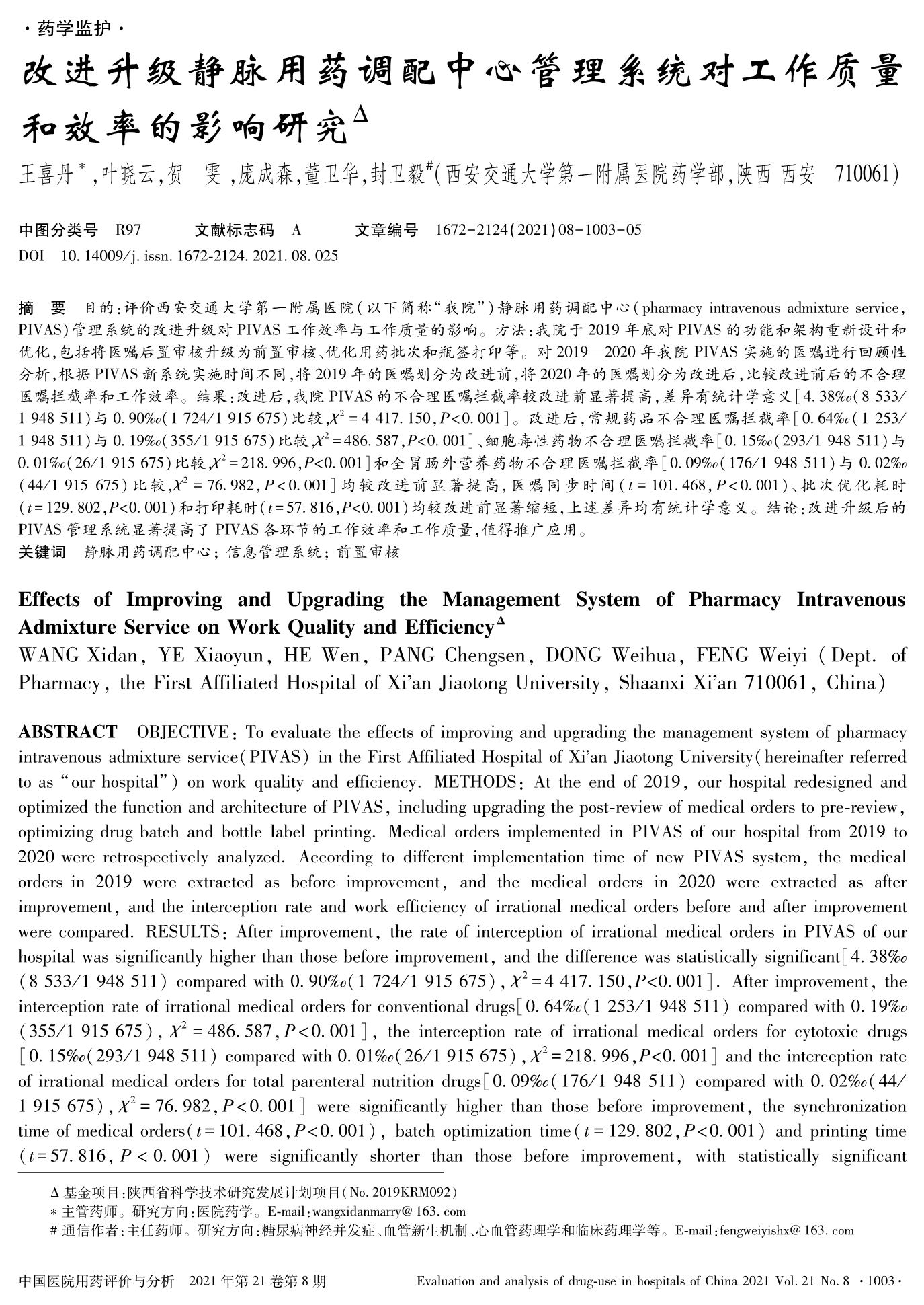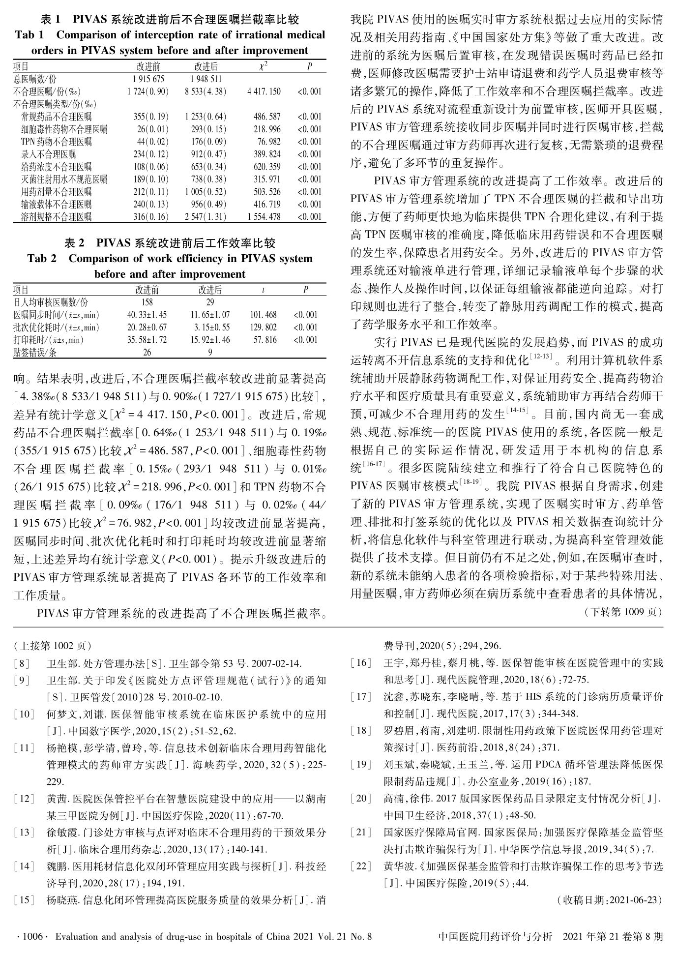改進(jìn)升級靜脈用藥調(diào)配中心管理系統(tǒng)對工作質(zhì)量和效率的影響研究