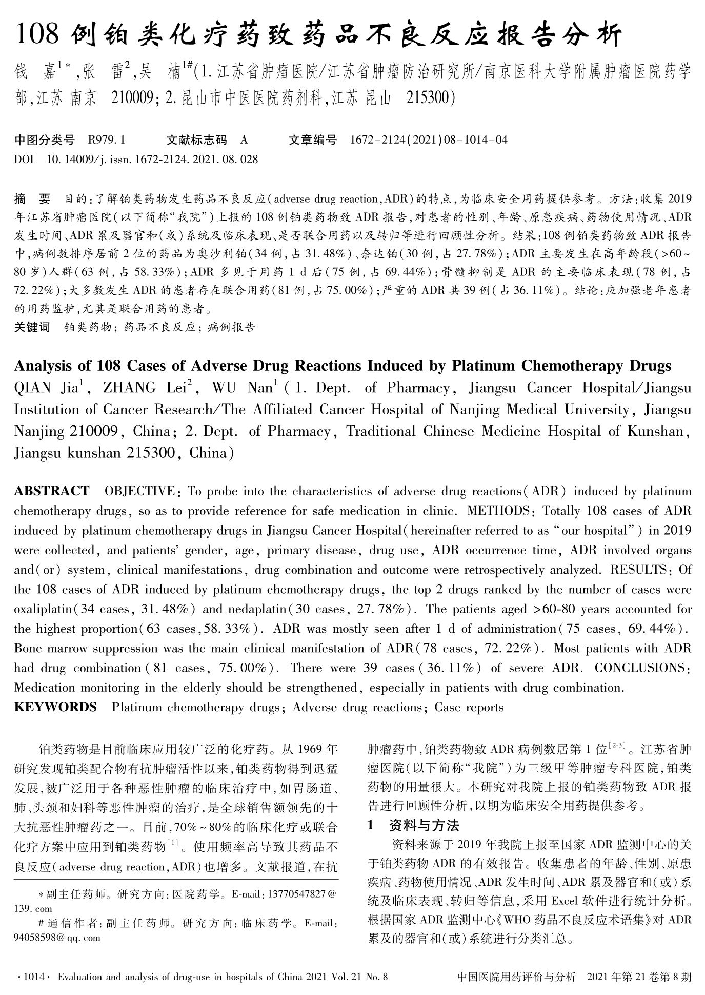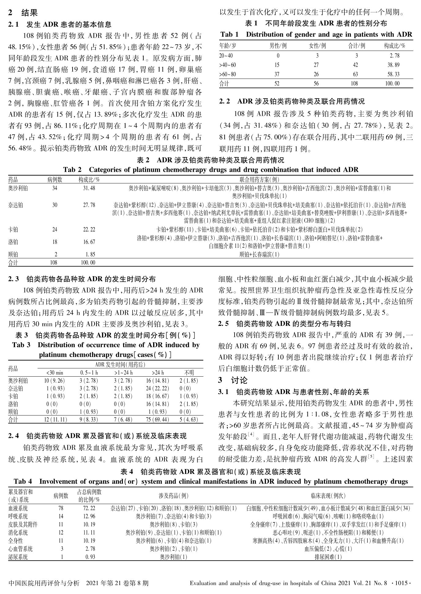 108例鉑類化療藥致藥品不良反應(yīng)報(bào)告分析