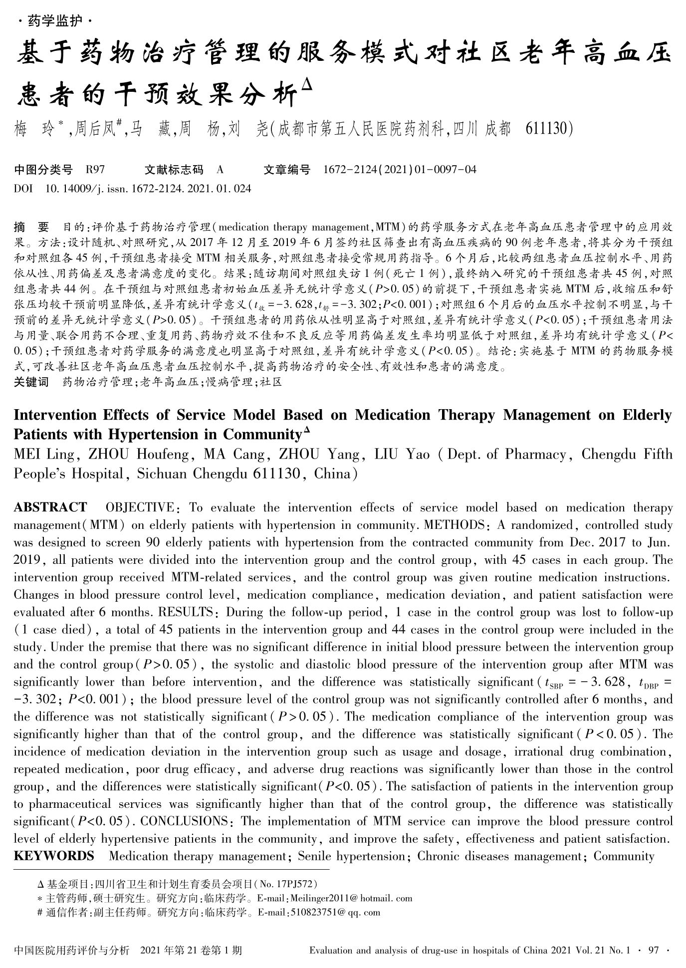 基于藥物治療管理的服務(wù)模式對社區(qū)老年高血壓患者的干預(yù)效果分析