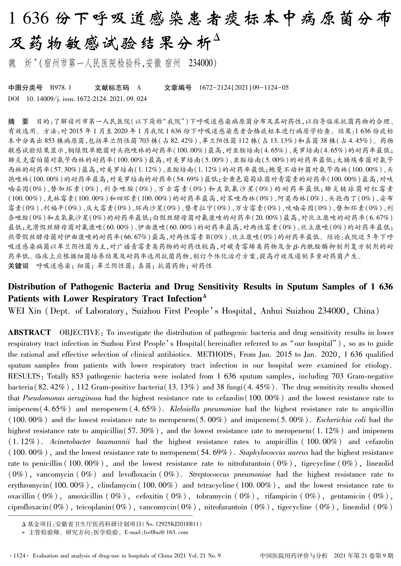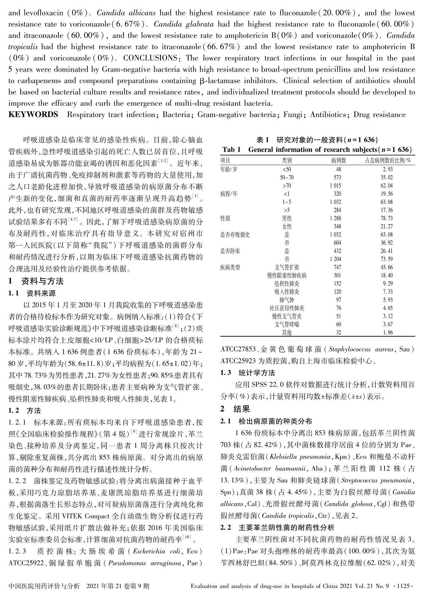 1636份下呼吸道感染患者痰標本中病原菌分布及藥物敏感試驗結(jié)果分析