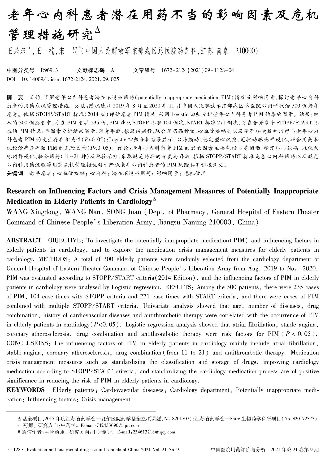 老年心內(nèi)科患者潛在用藥不當(dāng)?shù)挠绊懸蛩丶拔C管理措施研究