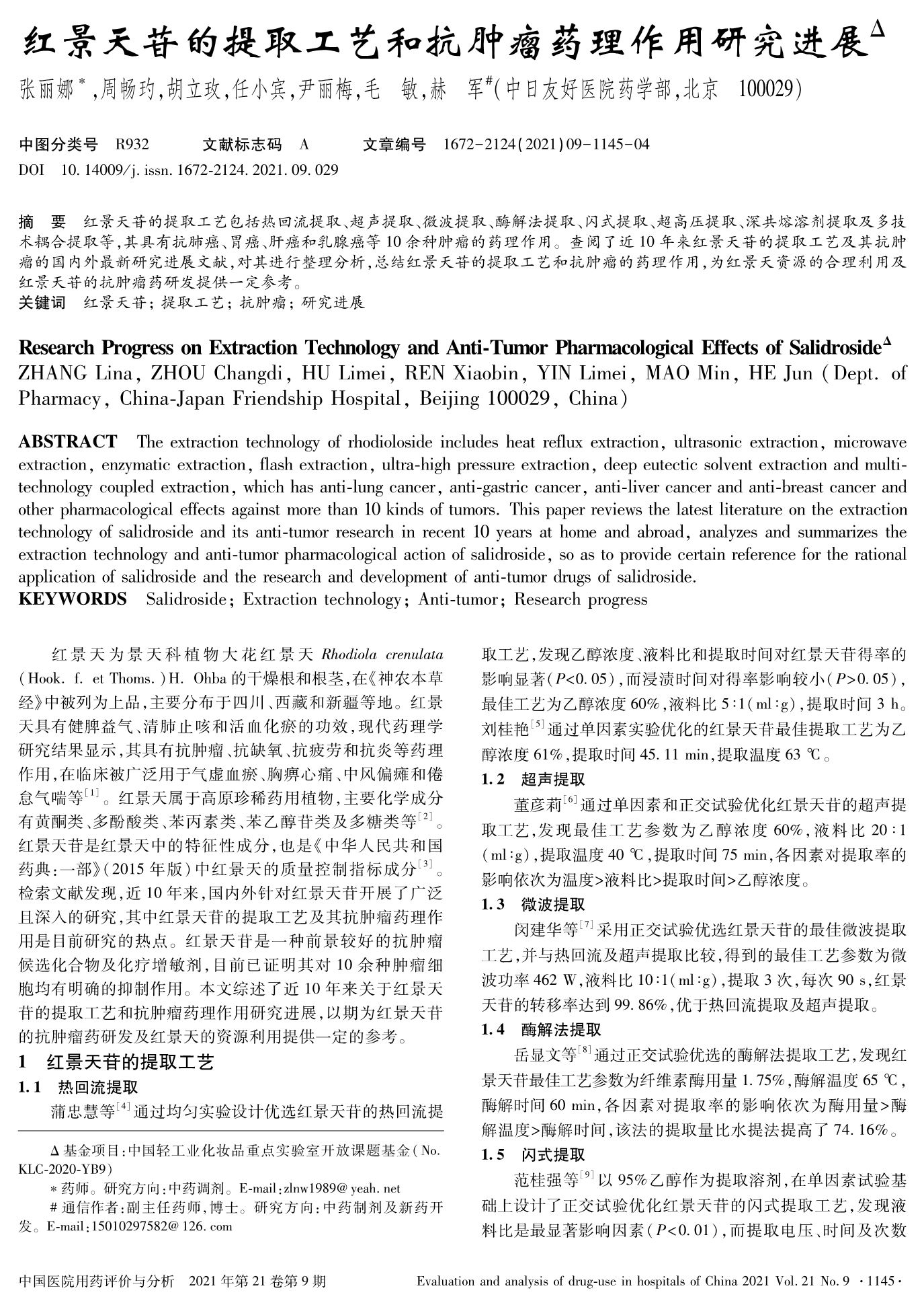 紅景天苷的提取工藝和抗腫瘤藥理作用研究進(jìn)展
