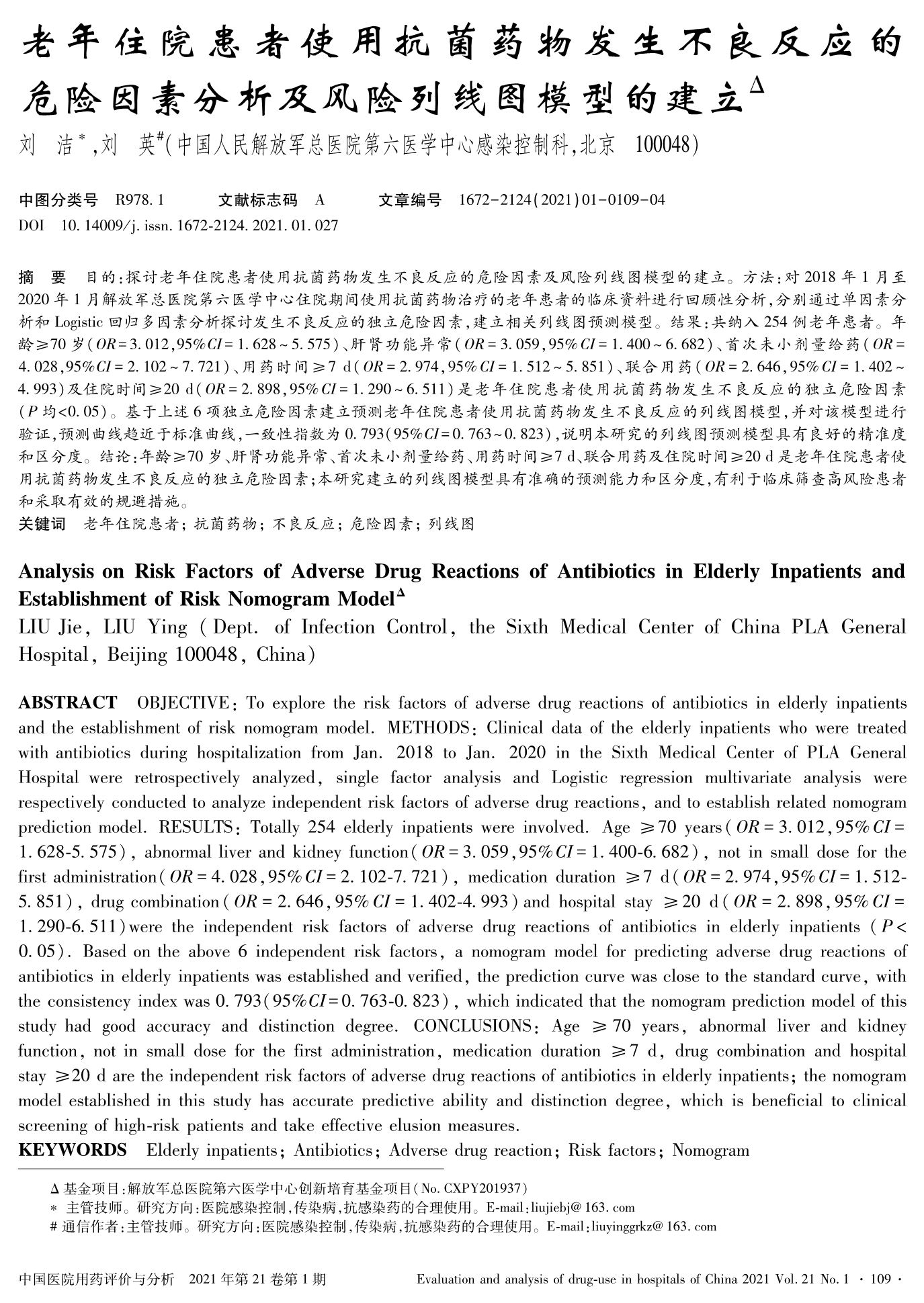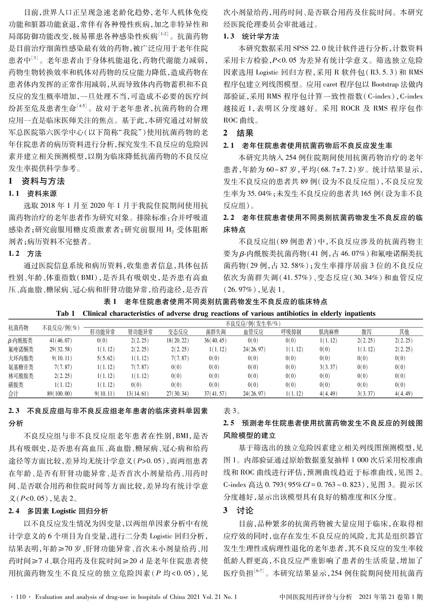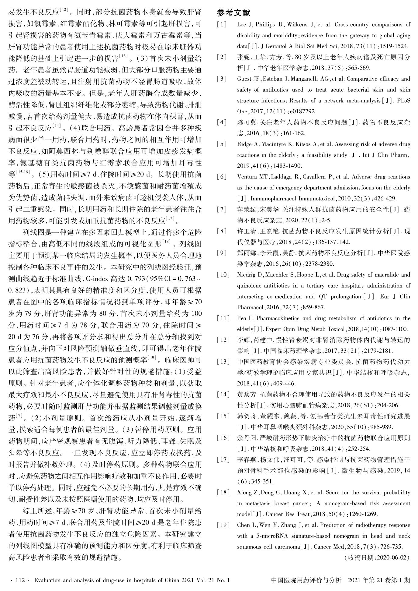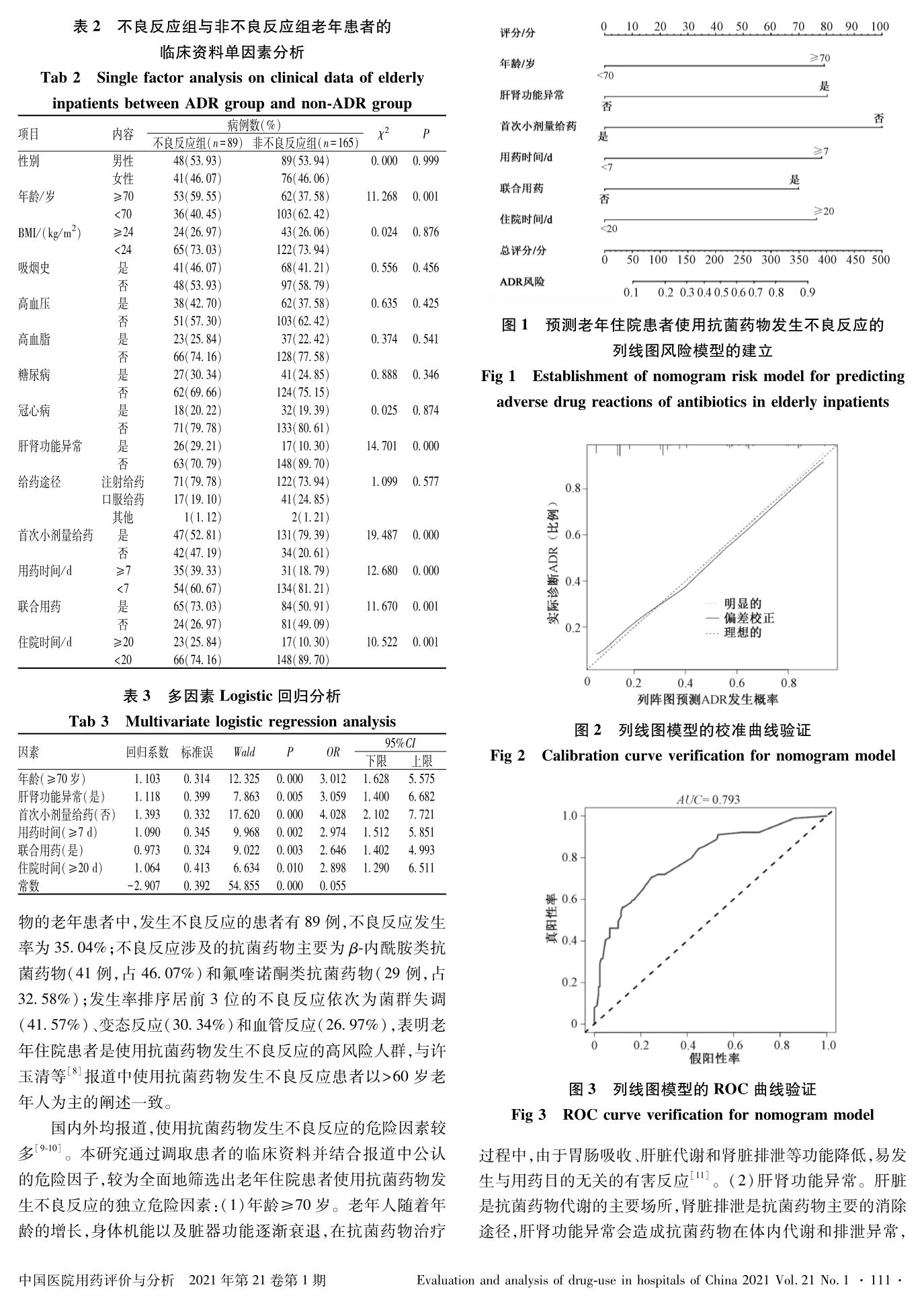 老年住院患者使用抗菌藥物發(fā)生不良反應(yīng)的危險因素分析及風(fēng)險列線圖模型的建立
