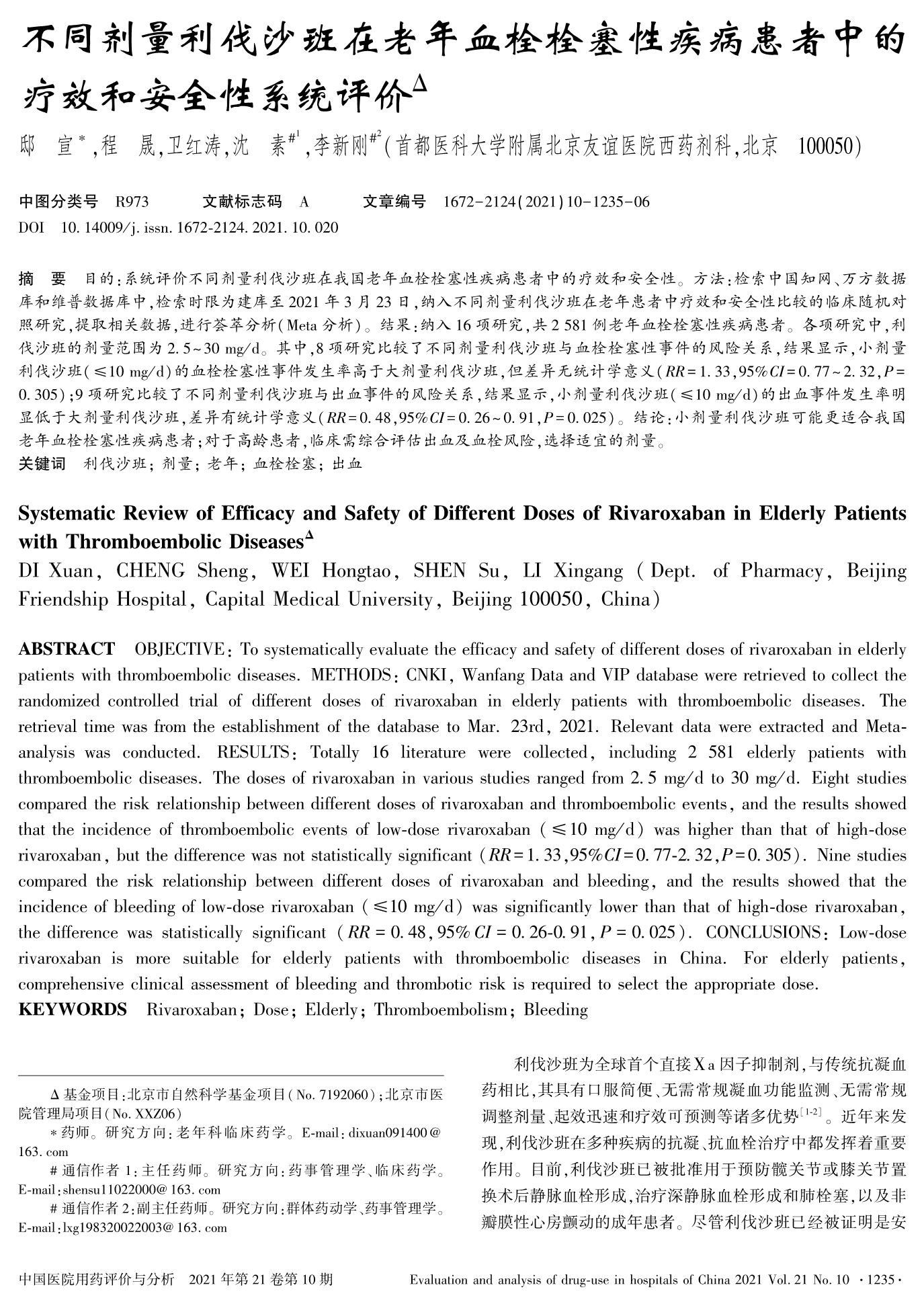 不同劑量利伐沙班在老年血栓栓塞性疾病患者中的療效和安全性系統(tǒng)評價