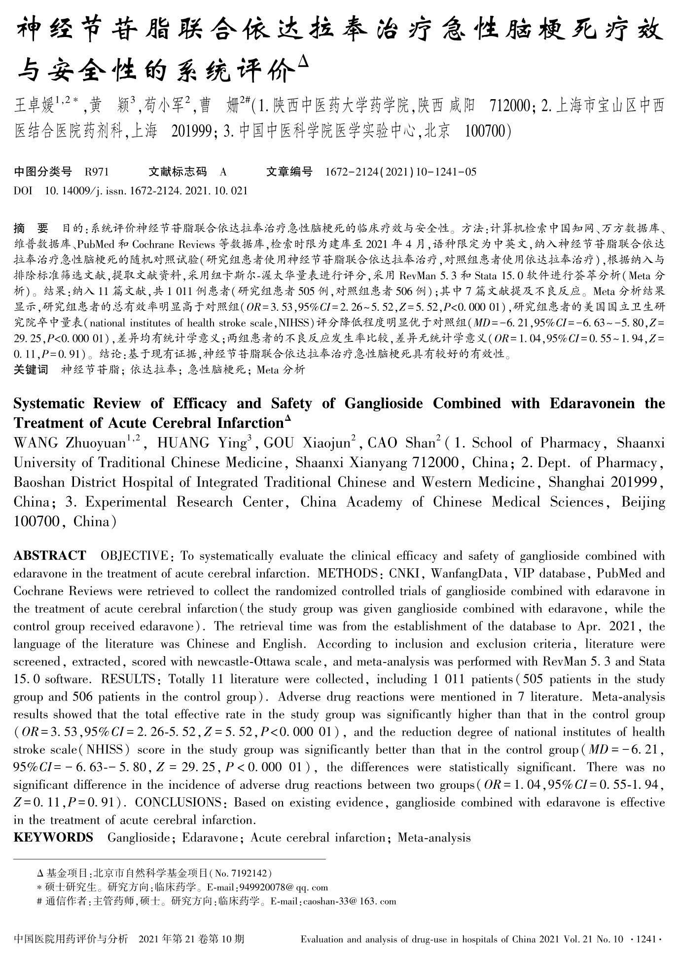 神經(jīng)節(jié)苷脂聯(lián)合依達(dá)拉奉治療急性腦梗死療效與安全性的系統(tǒng)評價(jià)