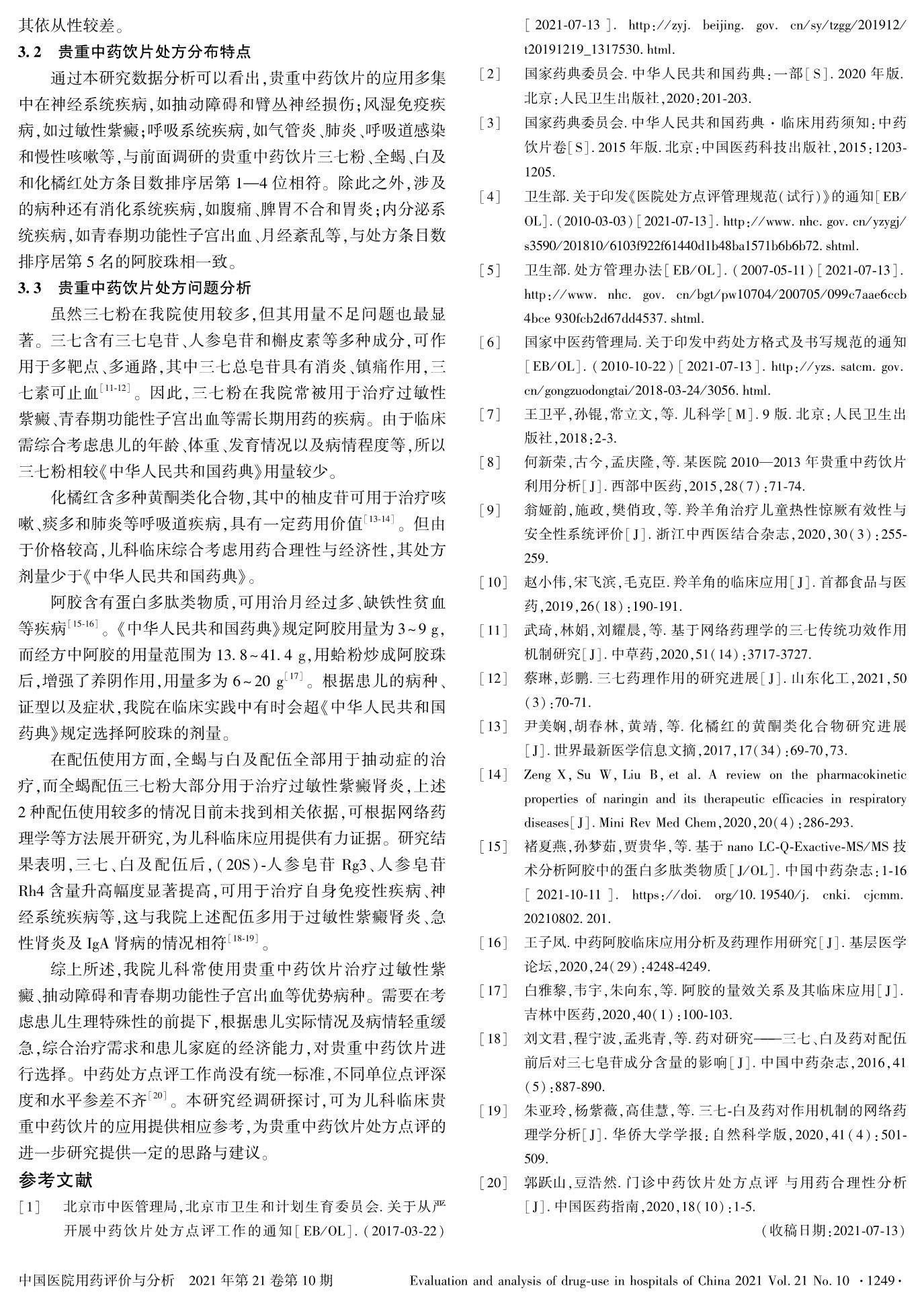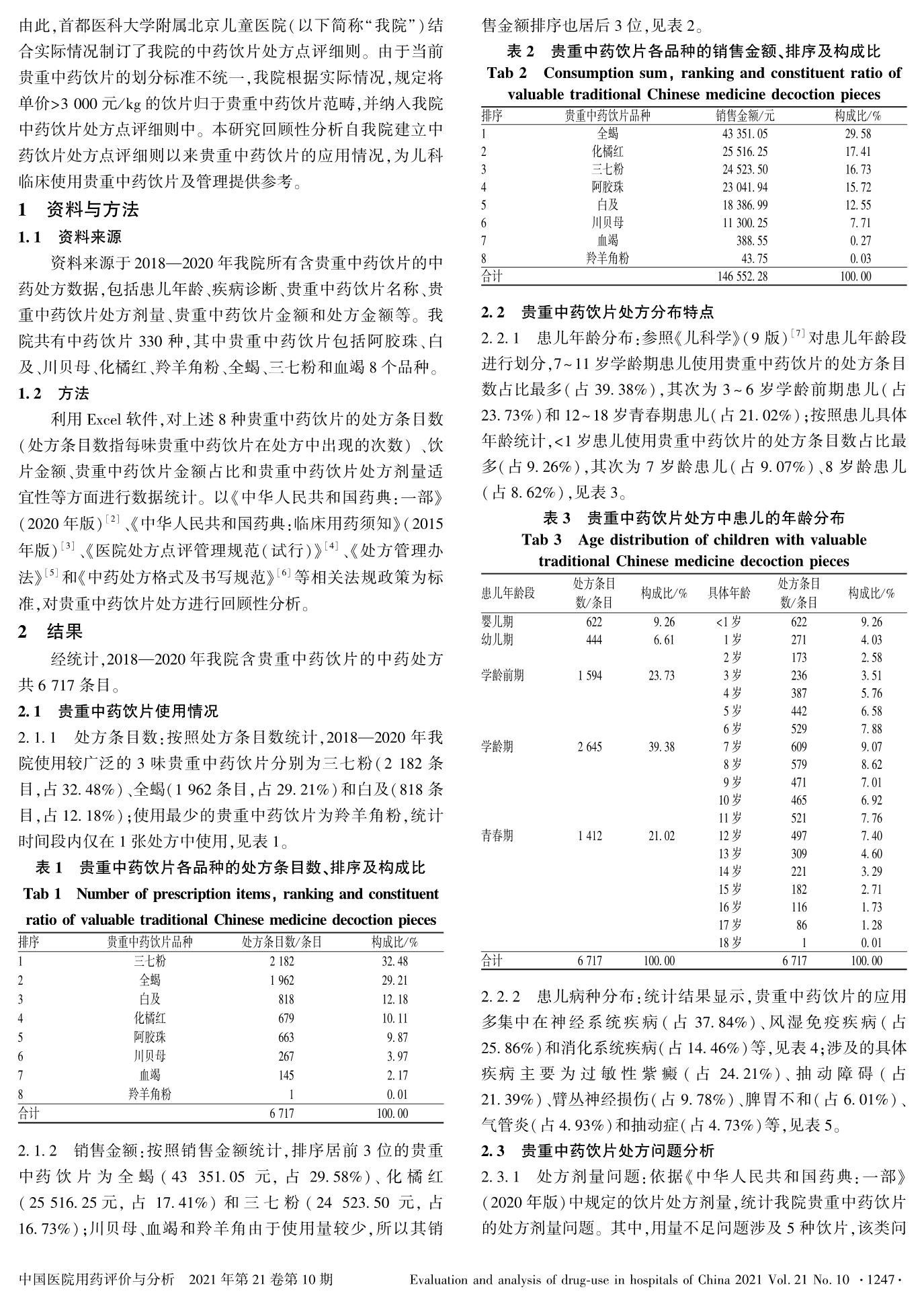 2018—2020年首都醫(yī)科大學(xué)附屬北京兒童醫(yī)院貴重中藥飲片使用情況回顧性分析