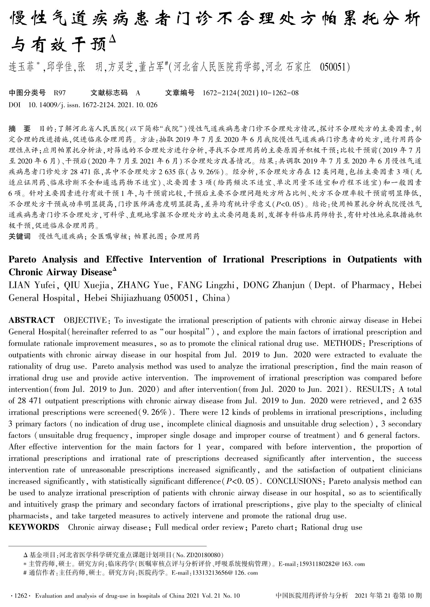 慢性氣道疾病患者門診不合理處方帕累托分析與有效干預