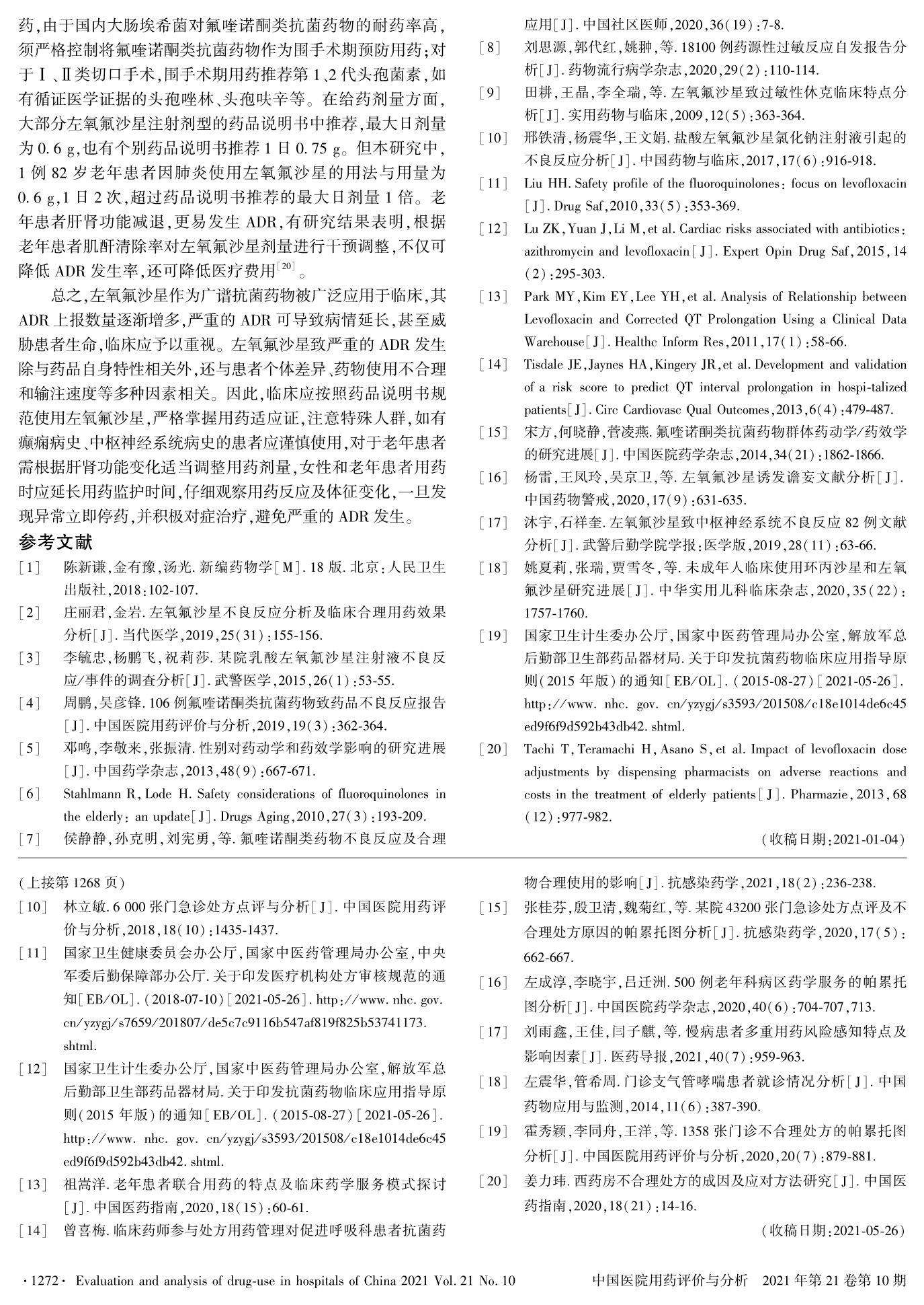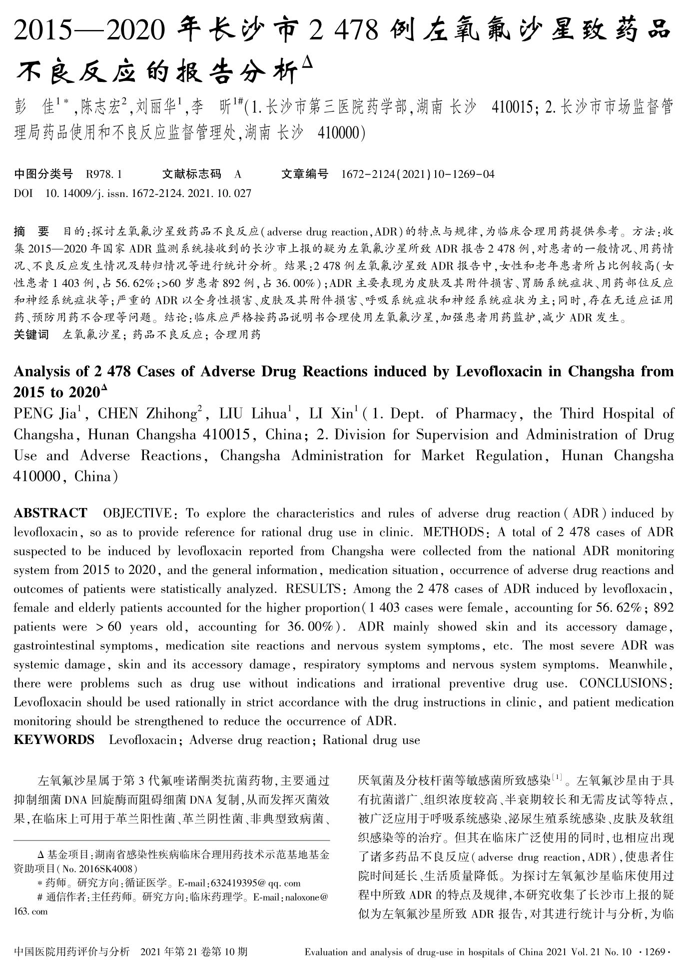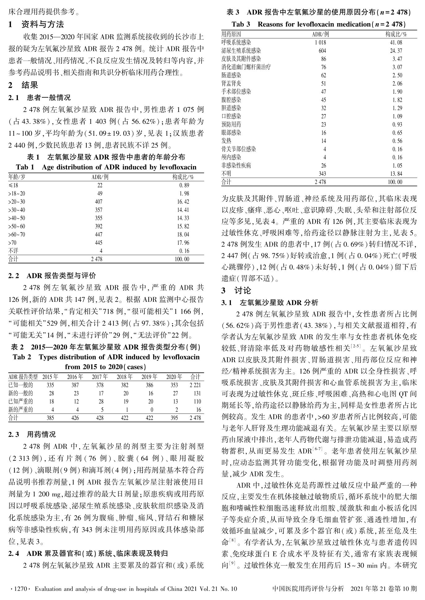 2015—2020年長(zhǎng)沙市2478例左氧氟沙星致藥品不良反應(yīng)的報(bào)告分析