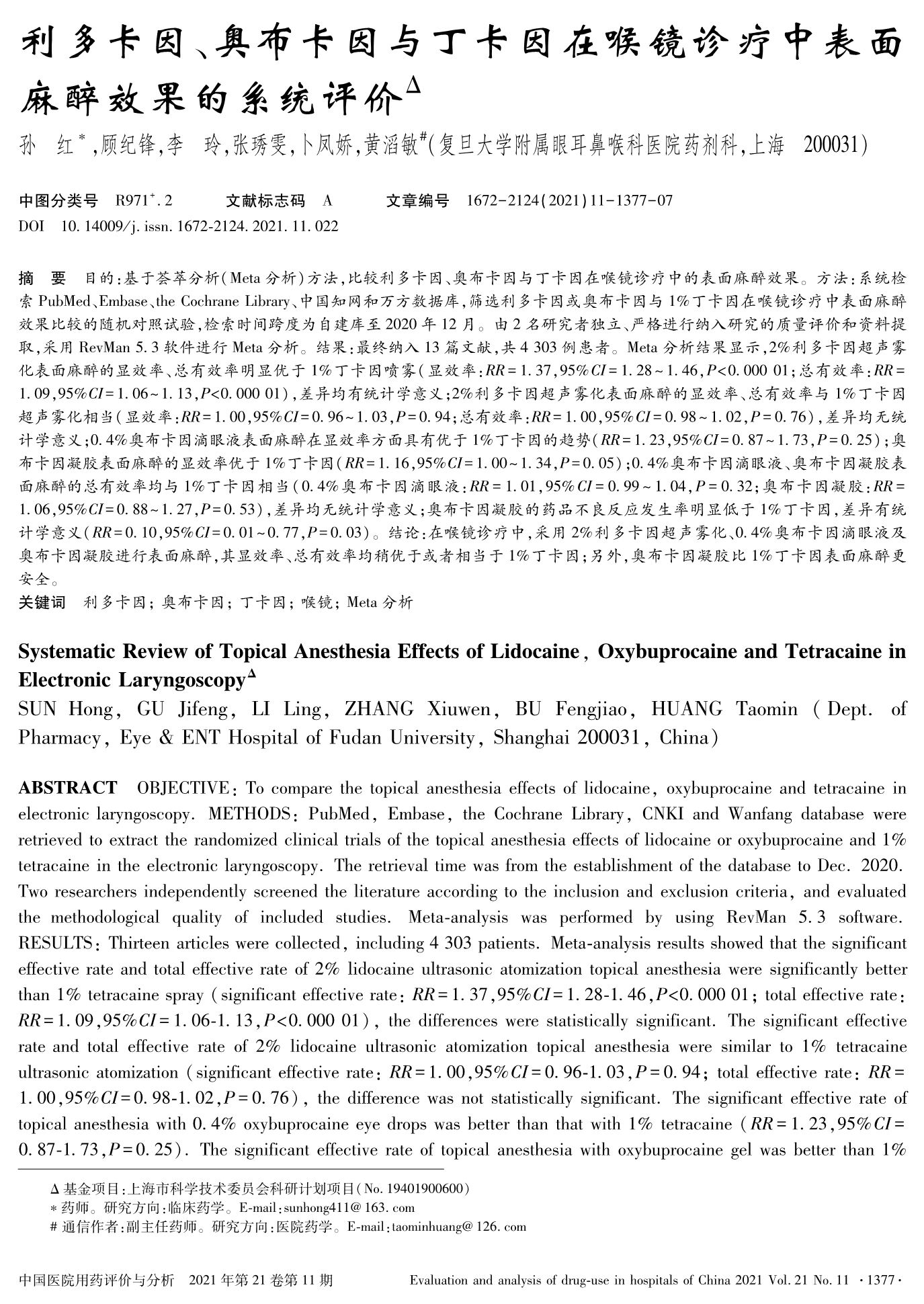 利多卡因、奧布卡因與丁卡因在喉鏡診療中表面麻醉效果的系統(tǒng)評(píng)價(jià)