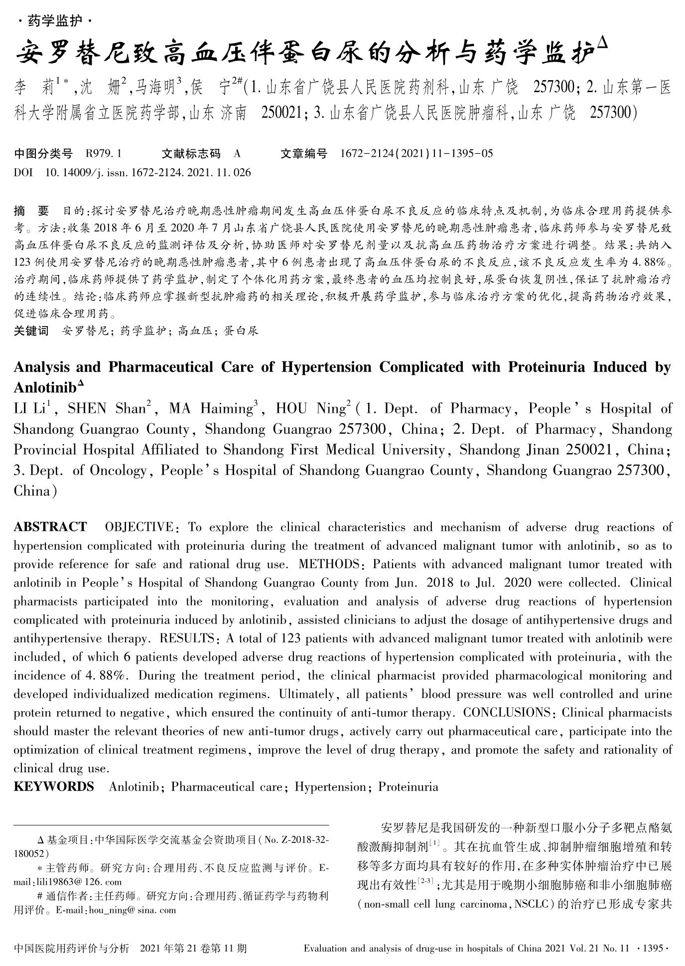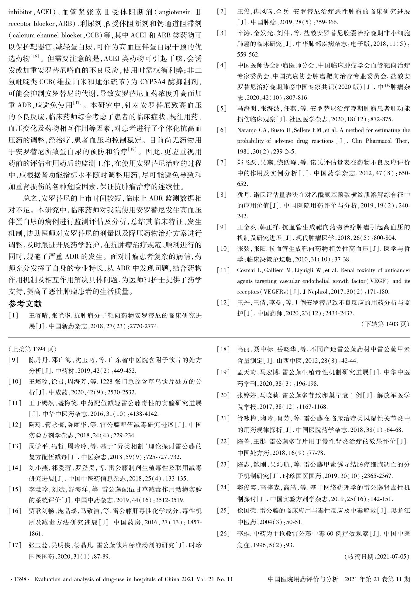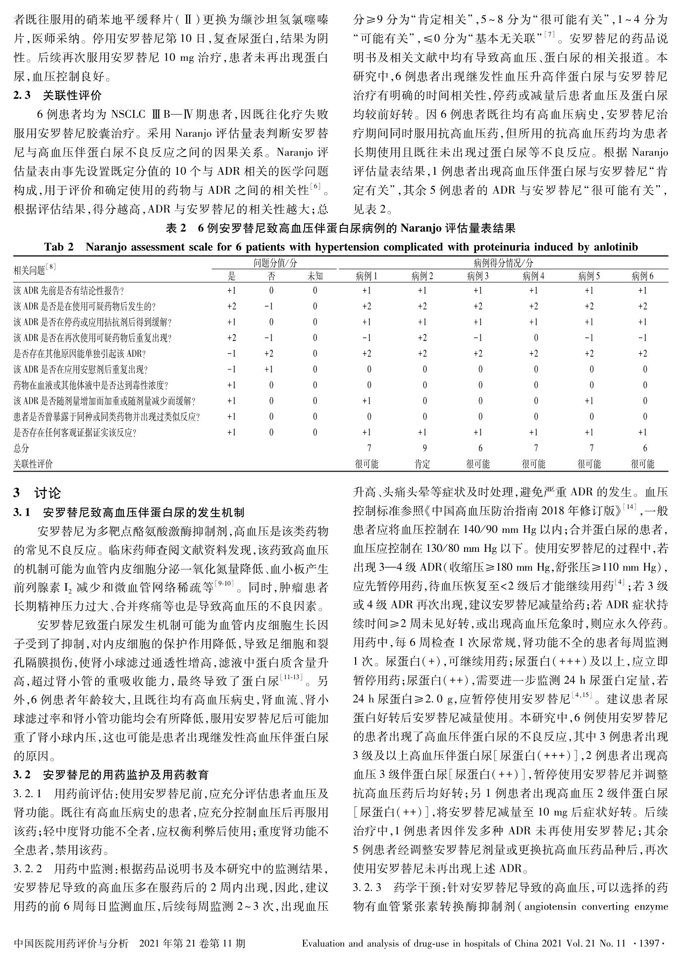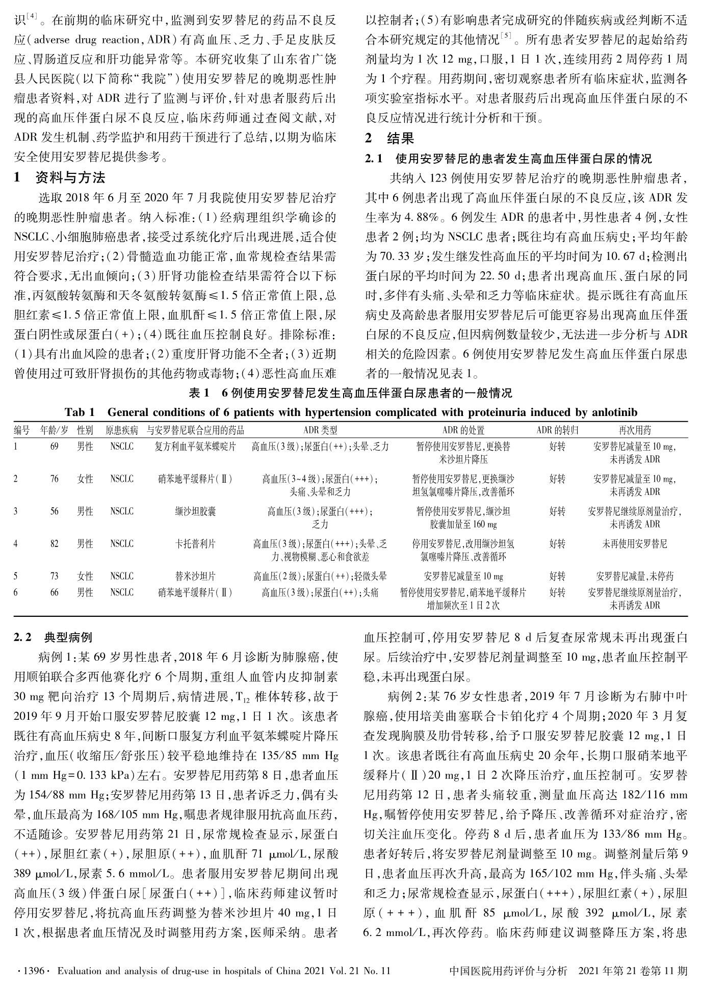 安羅替尼致高血壓伴蛋白尿的分析與藥學(xué)監(jiān)護(hù)