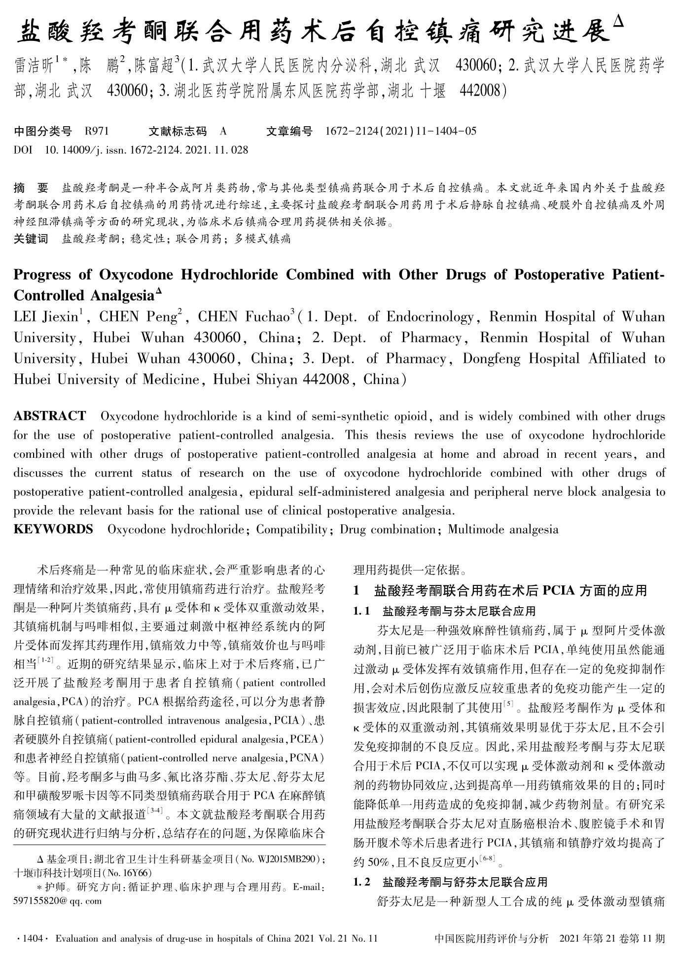 鹽酸羥考酮聯(lián)合用藥術后自控鎮(zhèn)痛研究進展